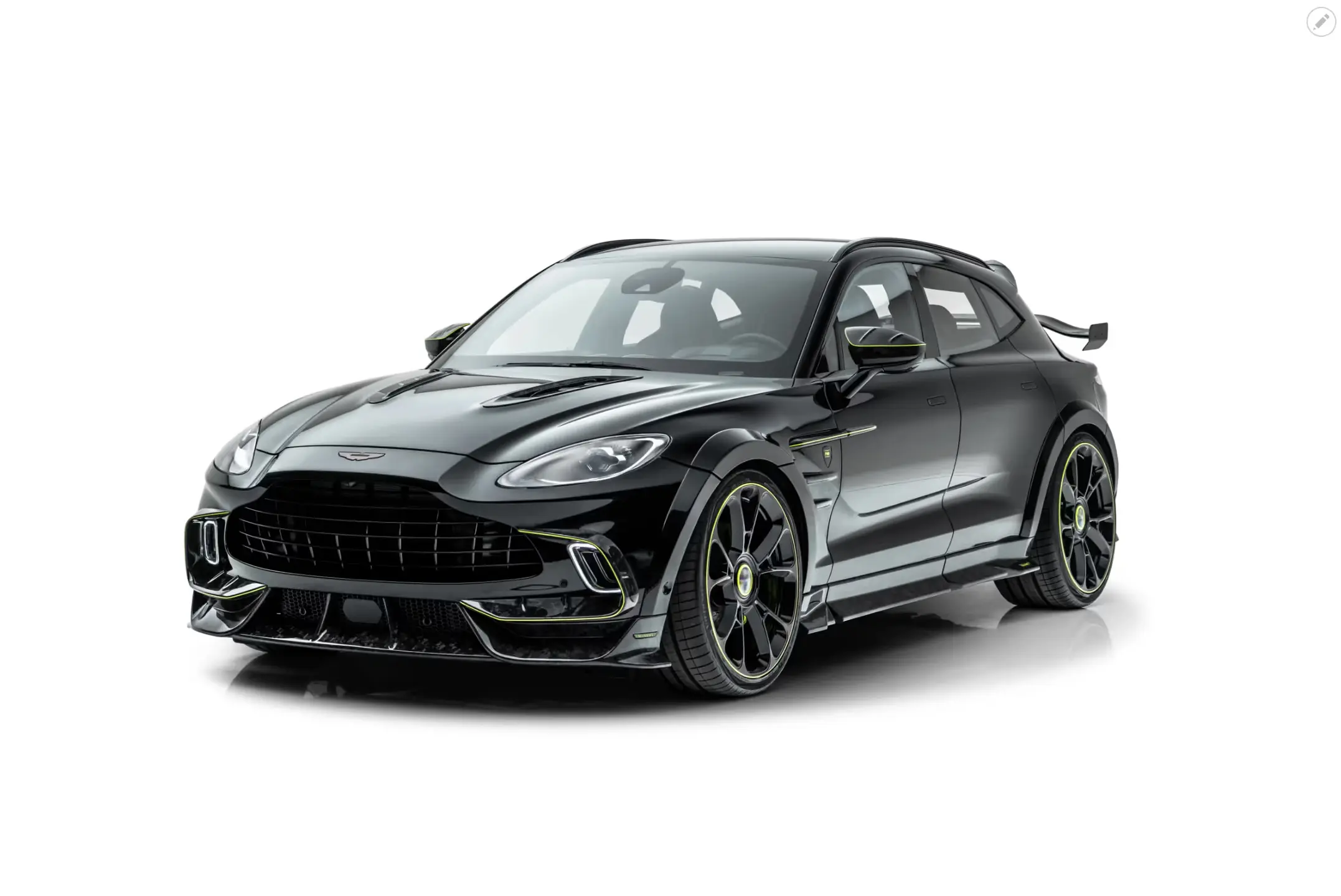 MANSORY transforms the Aston Martin DBX into a high-performance SUV Complete vehicle conversion Paintwork in "Black Metallic" with "Limegreen" accents All carbon add-on parts in "Forged-Carbon". New rim design type "DX.5 Sports exhaust system in two design variants Power increase to 800 hp and 1.000 Nm Performance: Vmax 325 km/h and 0-100km/h in 3,8s Full leather interior with "Limegreen" accents