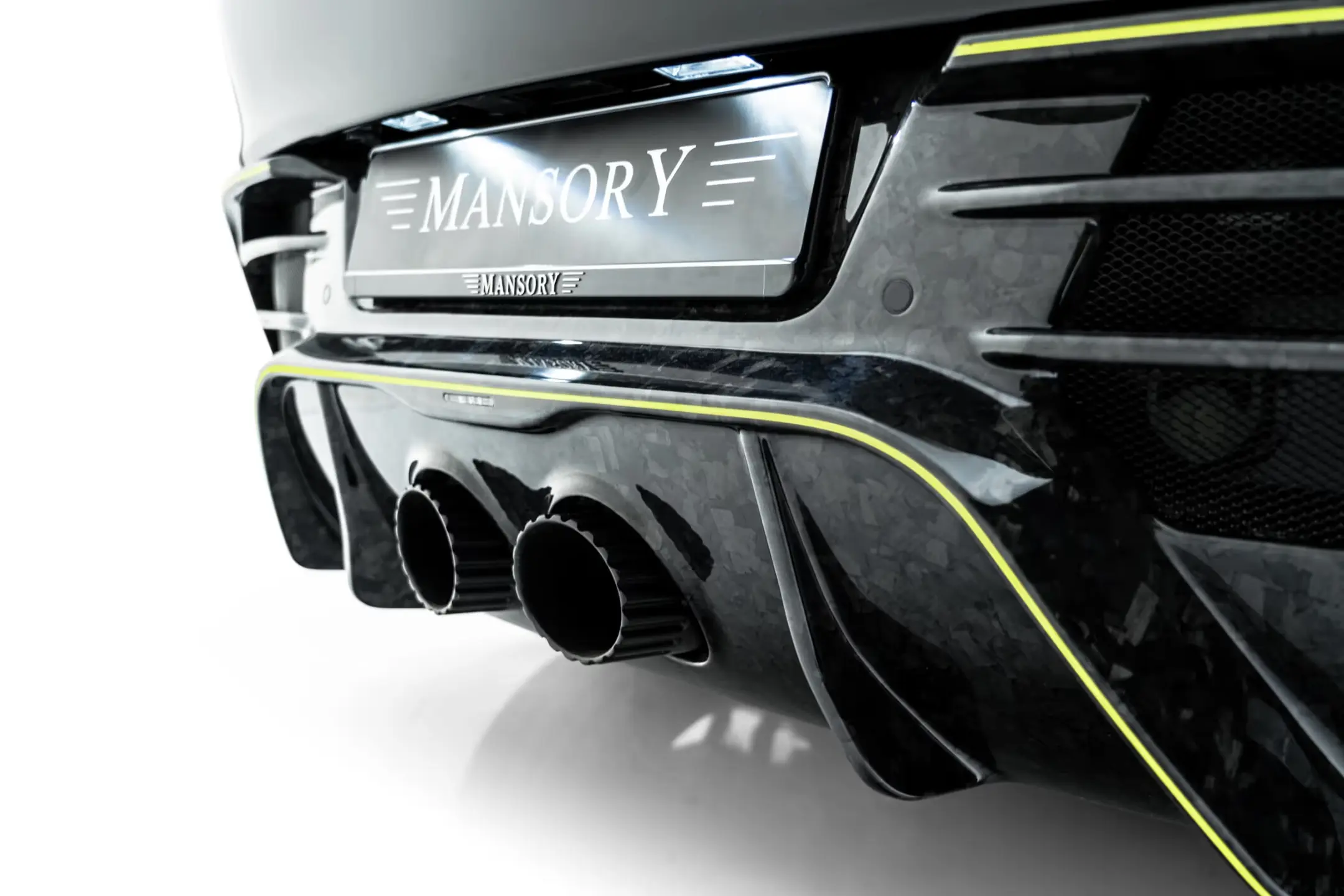 This includes a completely new engine management system, new and larger turbochargers, a sports air filter and a high-performance sports exhaust system. The exhaust system can be supplied in two versions - entirely according to the customer's wishes. The systems differ recognisably in the positioning of the tailpipes; either they are located in the area of the standard rear apron opening or they end as closely spaced double pipes in the middle of the carbon rear apron. Thanks to all these changes, after its conversion at MANSORY, delivers an impressive 800 hp (standard: 550 hp) and an increased torque of 1.000 Nm (standard: 700 Nm) on the rollers of the dynamometer. The corresponding performance data are: Vmax 325 km/h and the sprint from 0 to 100 km/h takes place in a short 3,8s. CO2 emissions (combined): 347 g/km - Fuel consumption (combined): 16,7 l/100km - Status: 03/11/2021