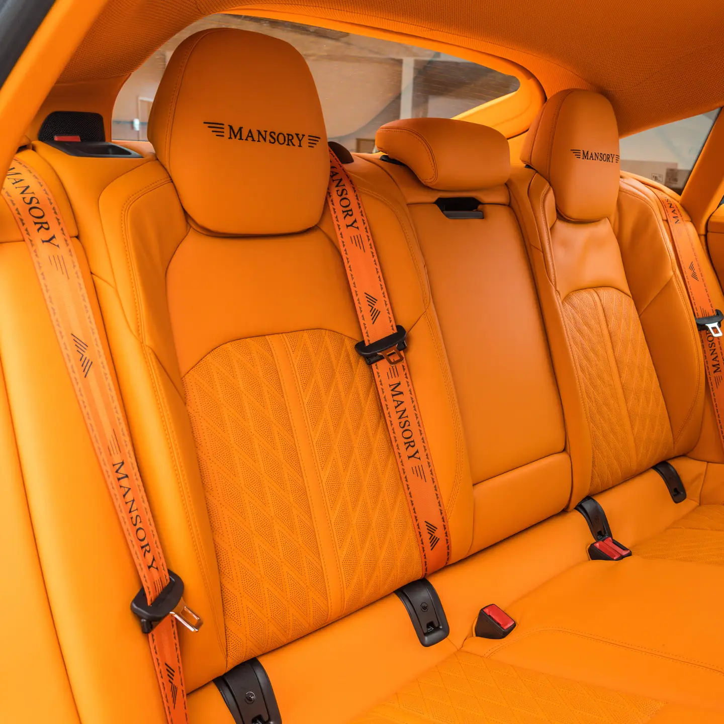 The interior has also been completely relined with new leather by MANSORY's own saddlery. Seats, the complete dashboard and other interior components were almost lavishly wrapped in leather, often supplemented with carbon applications and selectively upgraded. The interior is supplied in all colour combinations on request.