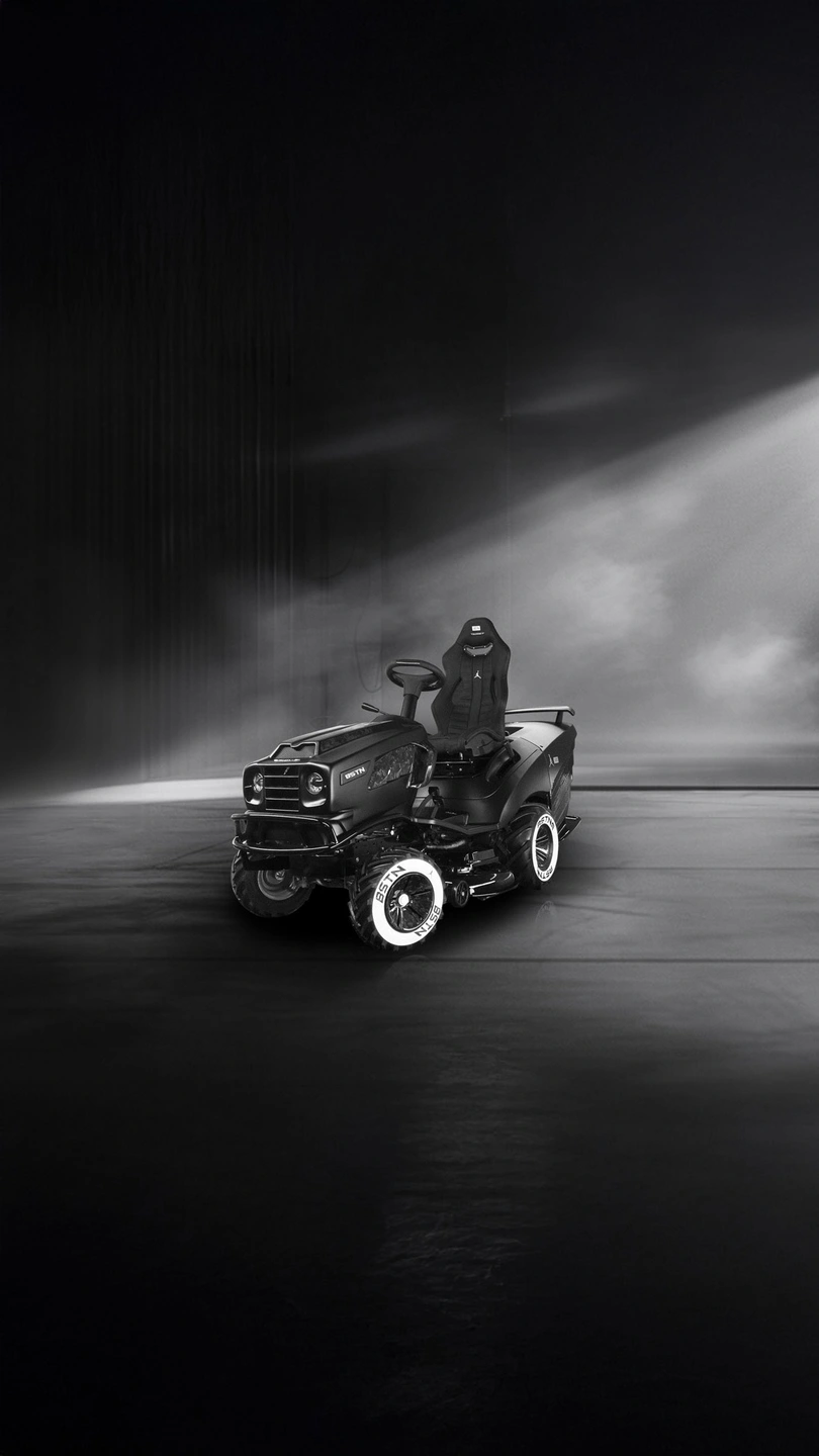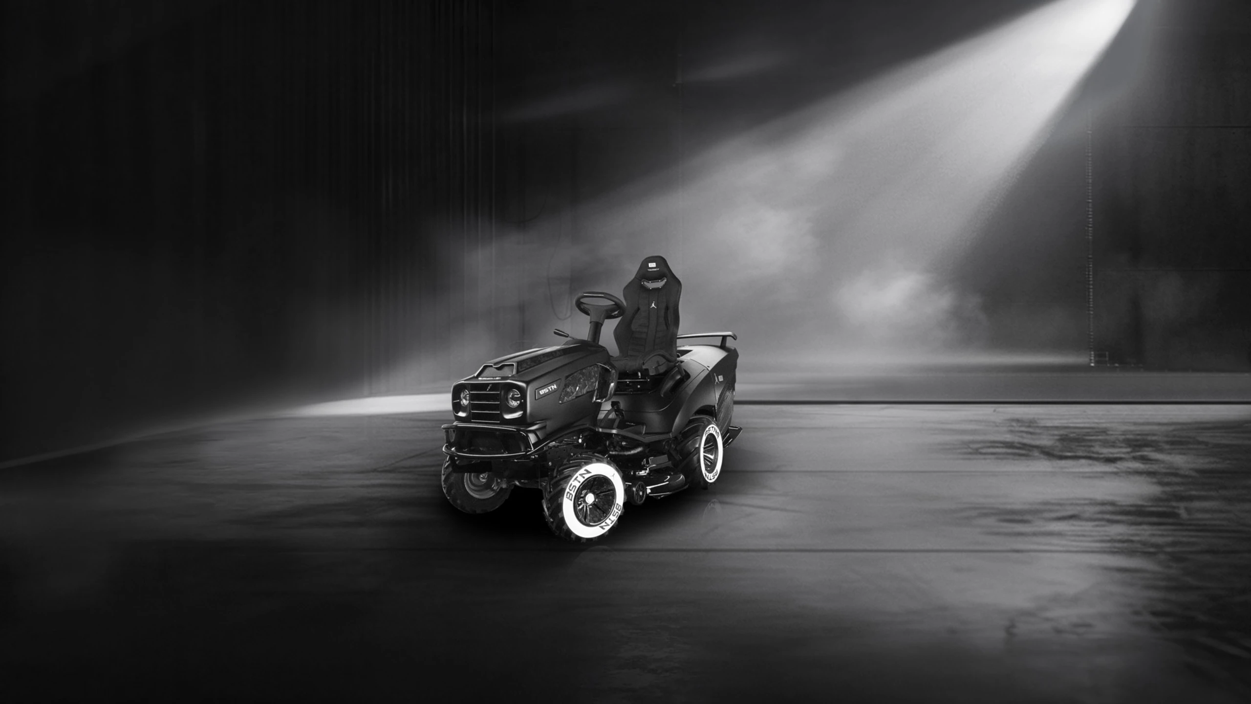 The BSTN GT XI is a unique ride-on lawnmower with custom-made carbon body parts, a lavishly designed leather-carbon seat and a leather-carbon steering wheel, typical features that can also be found on all other complete conversions from MANSORY.