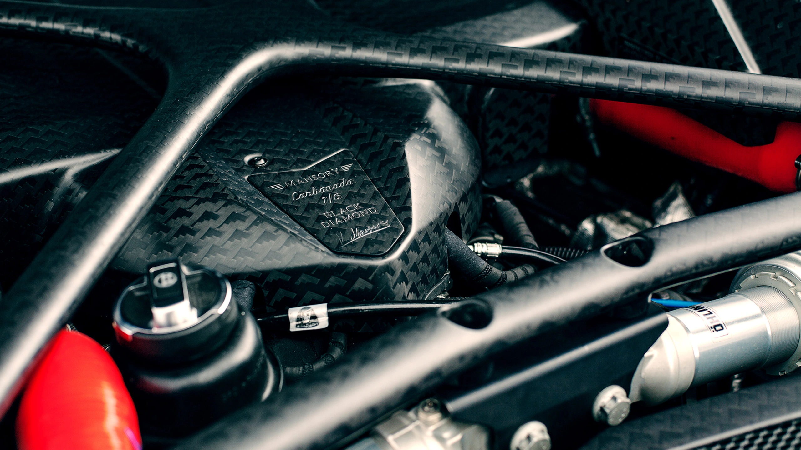 Design is in the details, but we got really dirty under the hood, trying to push the engine to the limit. We had completely reworked the 6.5 liter V12 and fitted it with two MANSORY turbochargers. With this upgrade, the engine accelerates from zero to one hundred (km/h) in a breathtaking 2.6 seconds.