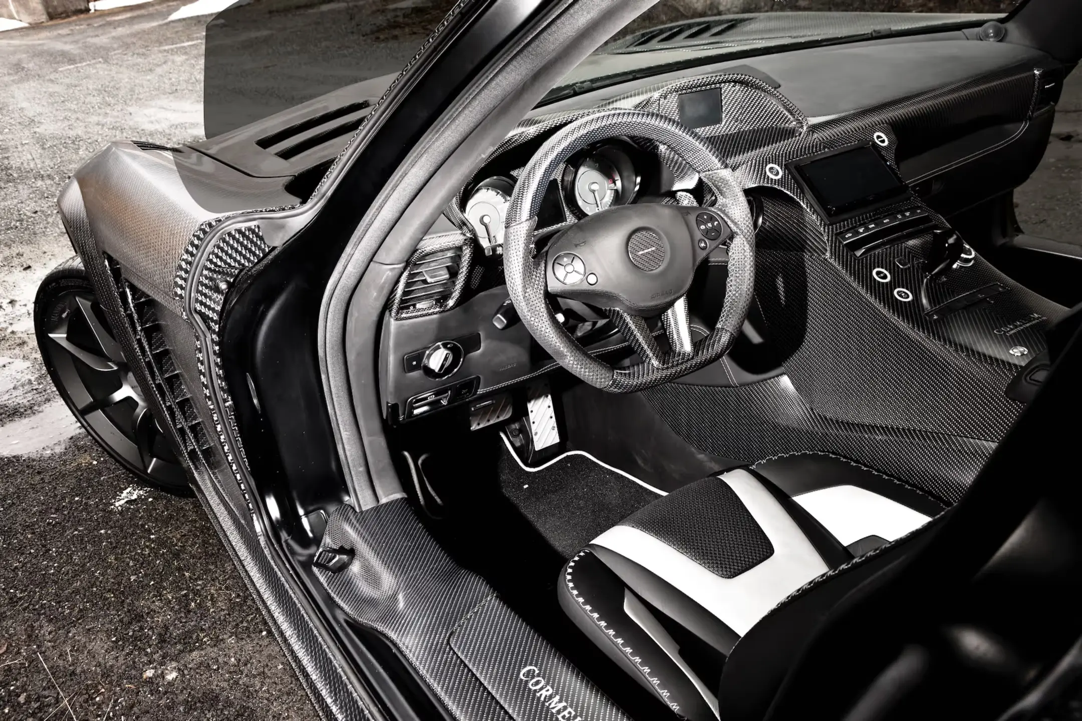 CORMEUM is a super sports car in a striking carbon shell, which is going to captivate anybody, who gets into the cockpit . In order to meet the increased requirements of the sports car, MANSORY optimized almost entire car body to reach an even more aggressive look. We even replaced the roof and gull-wing doors with ultra-light designs, which were developed in-house.