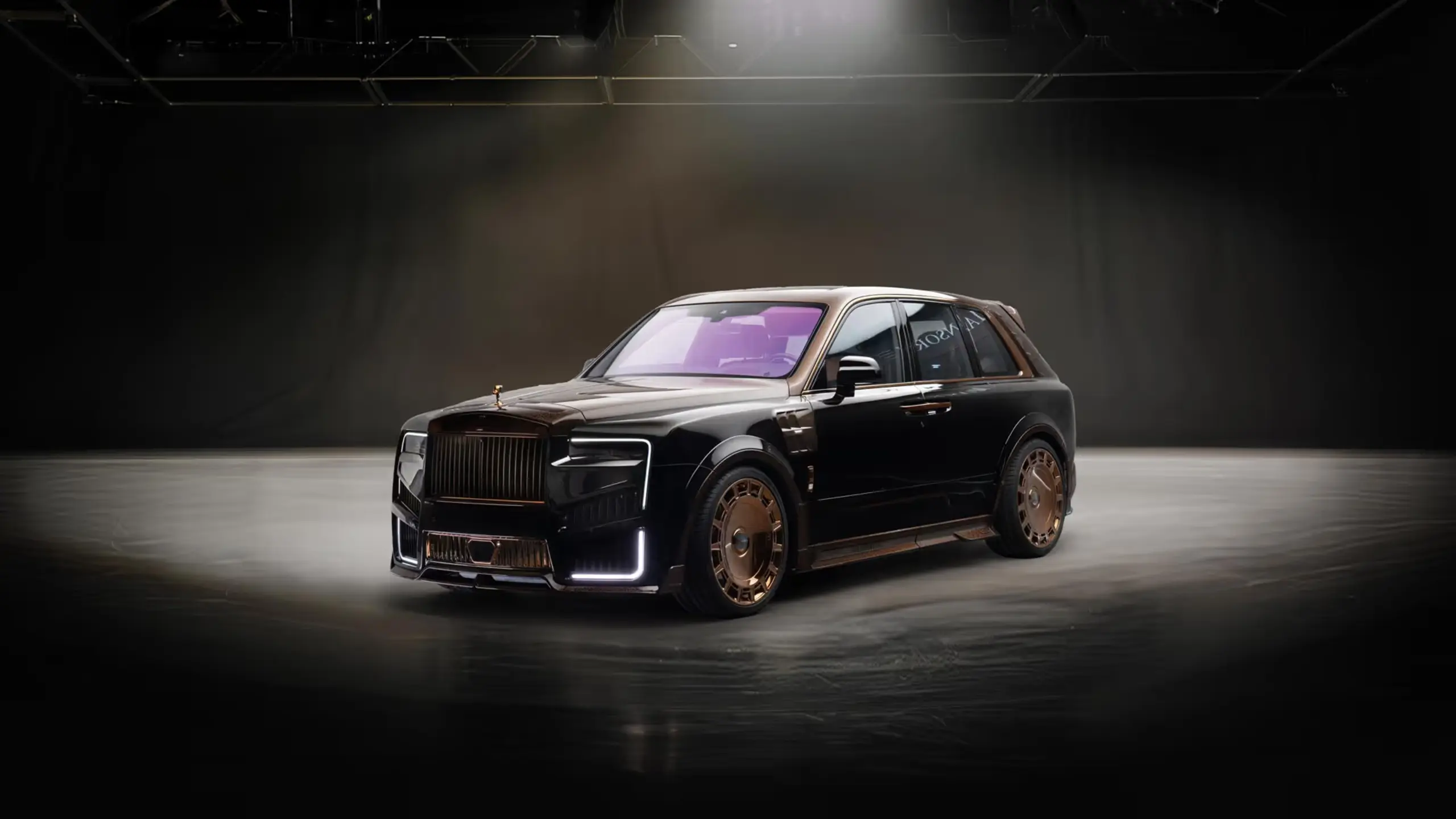 The MANSORY LINEA D`ARABO MY’25 based on the new facelifted Rolls Royce Cullinan. A complete vehicle one of one conversion under the programme ATELIER inspired by Kourosh Mansory; forged carbon with the name “MANSORY” in copper colour and intertwined in the Arabic language; forged rim design type FD.15 in 24 inch, a full leather interior with a lot of copper accents; power increase to 720 hp (series: 600 hp) and a torque increased to 1,050 Nm (series: 900 Nm). This shortens the sprint from 0 to 100 kilometers per hour to just 4.8 seconds. The top speed remains electronically limited to 250 km/h.