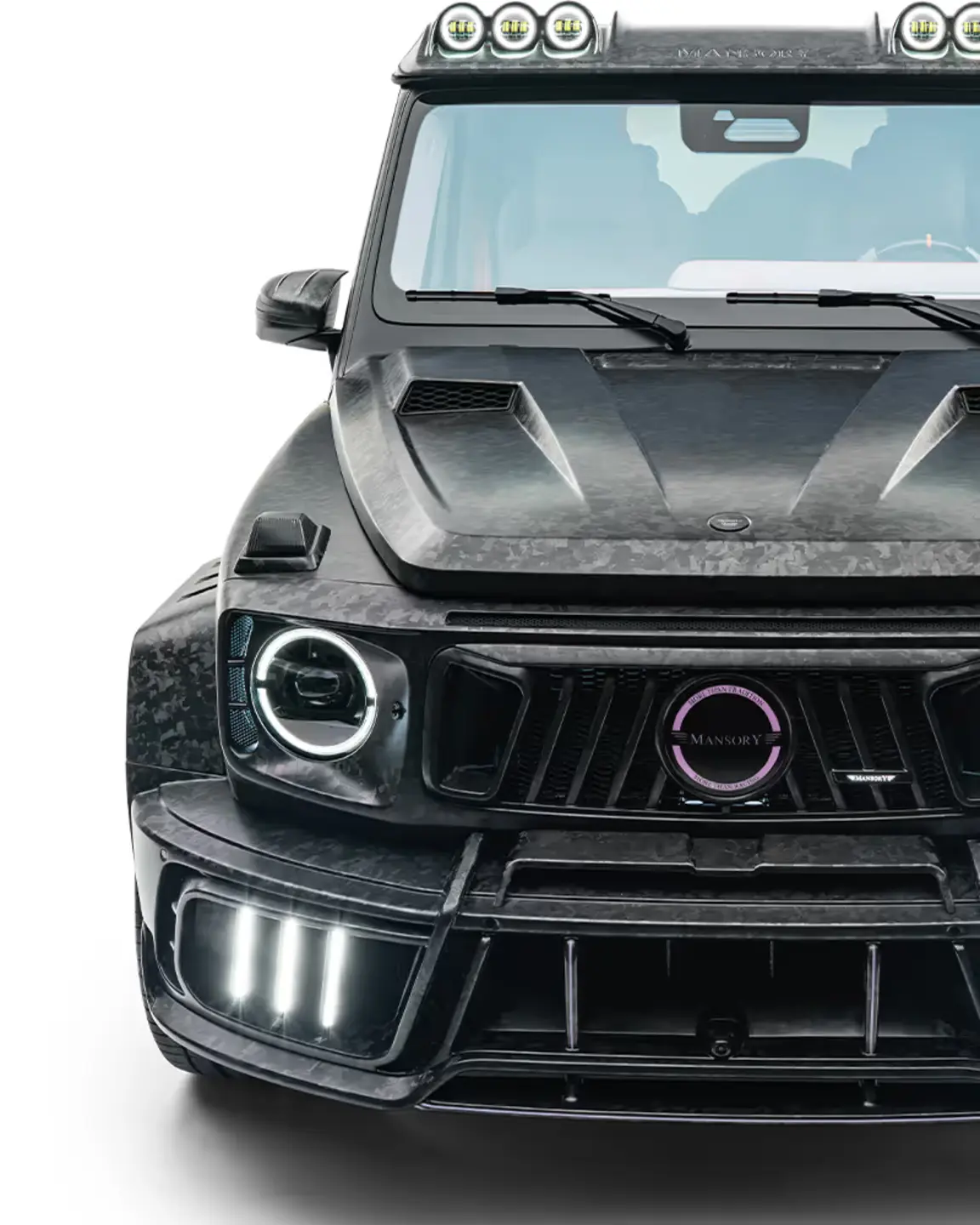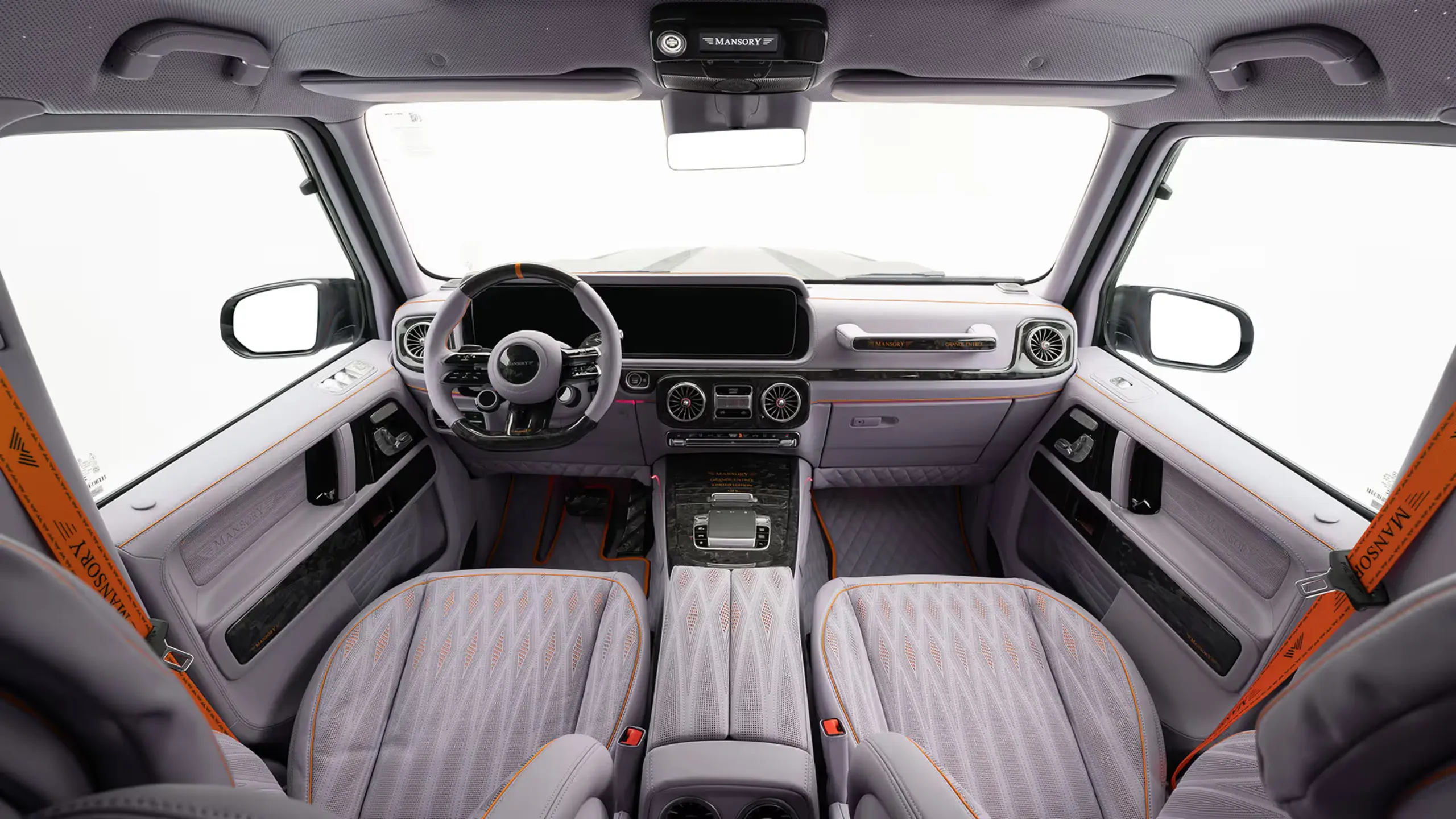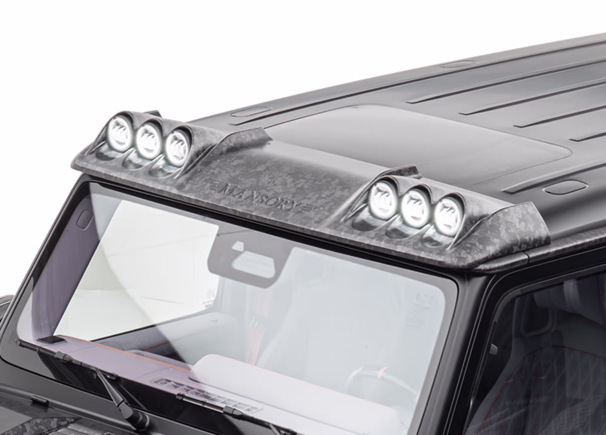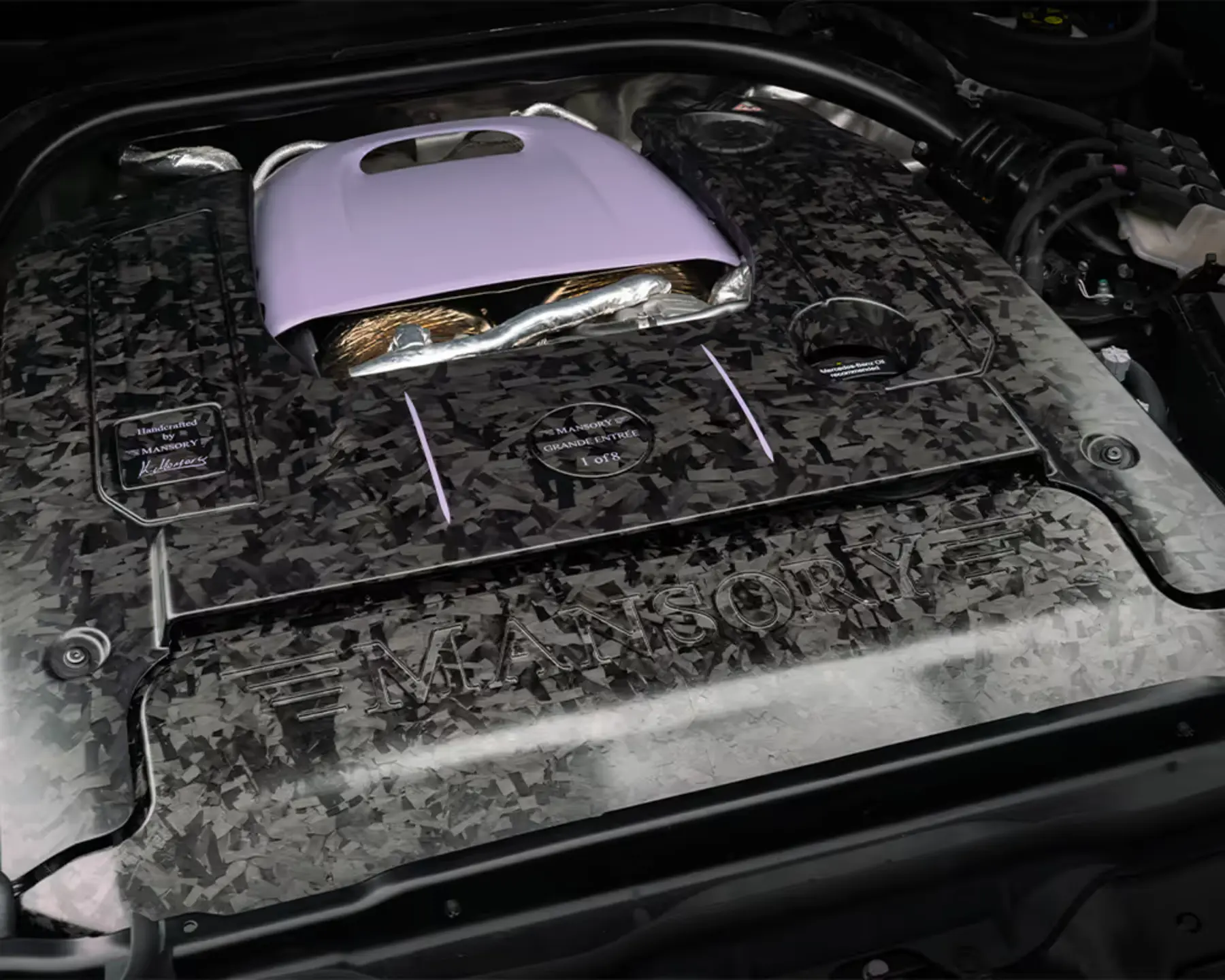 As with all MANSORY complete conversions, the interior can basically be freely selected in terms of colour, quilting and carbon design. [Read more] Many lovingly and in the highest quality craftsmanship executed details - such as the seat belts with embroidered MANSORY logo, MANSORY sport pedals in carbon, a MANSORY leather sports steering wheel, elaborately quilted MANSORY leather floor mats, MANSORY lettering in the grab handles, and countless other detail solutions make the “MANSORY Grande Entrée MY25" a very special vehicle, which is able to implement the customer's wishes in every respect in a masterful way, even in the interior. A start/stop button relocated into the headliner between the sun visors and several hundred illuminated LEDs in the headliner and in the door panels representing a starry sky complete the changes in the interior of the " Gronos" and offer a unique ambience for the highest demands.