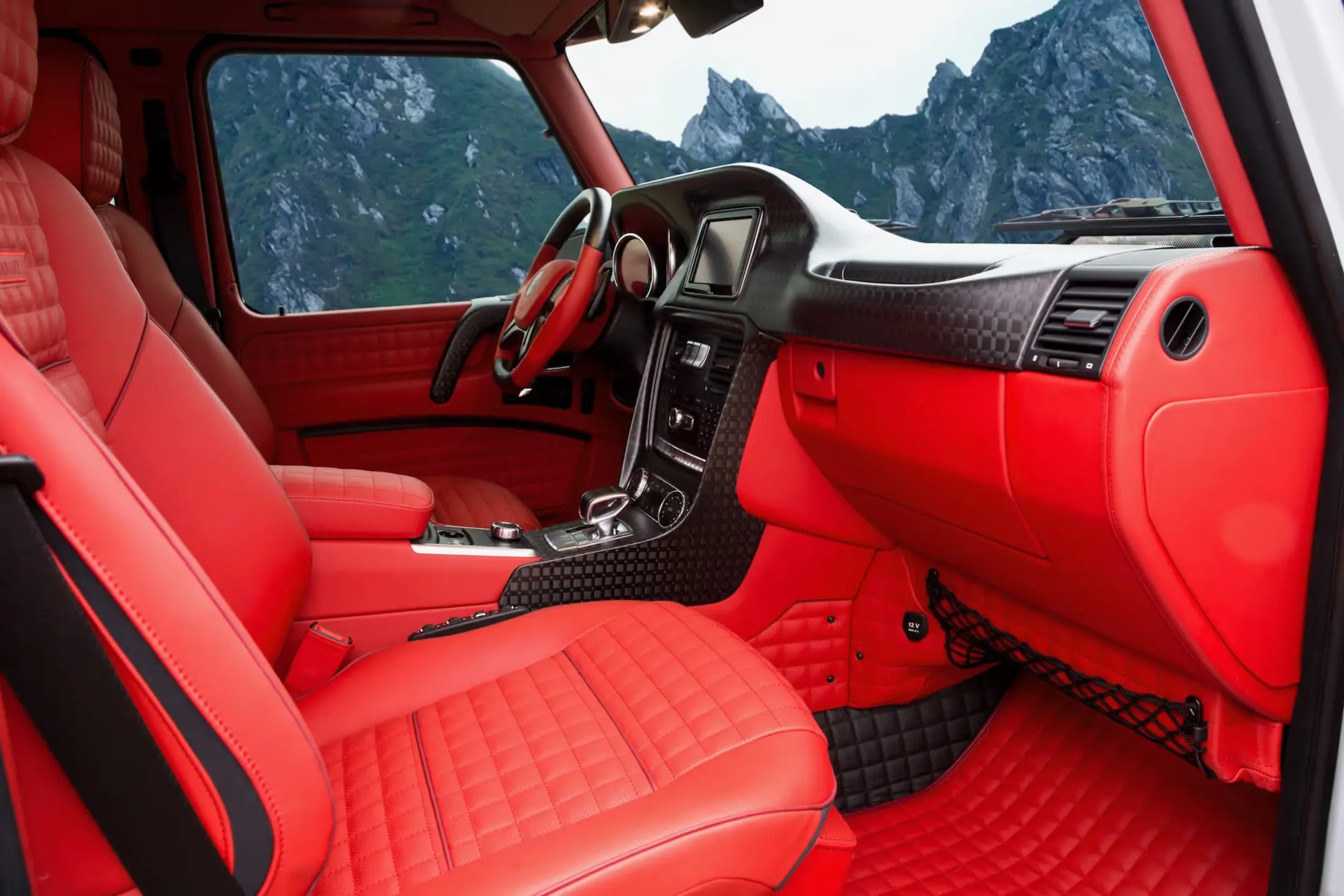 The stunning red interior contrasts with the white body, making the car one of a kind. Our team uses only the best, flawless leather, the highest quality Alcantara and of course only perfectly-produced carbon fibre.