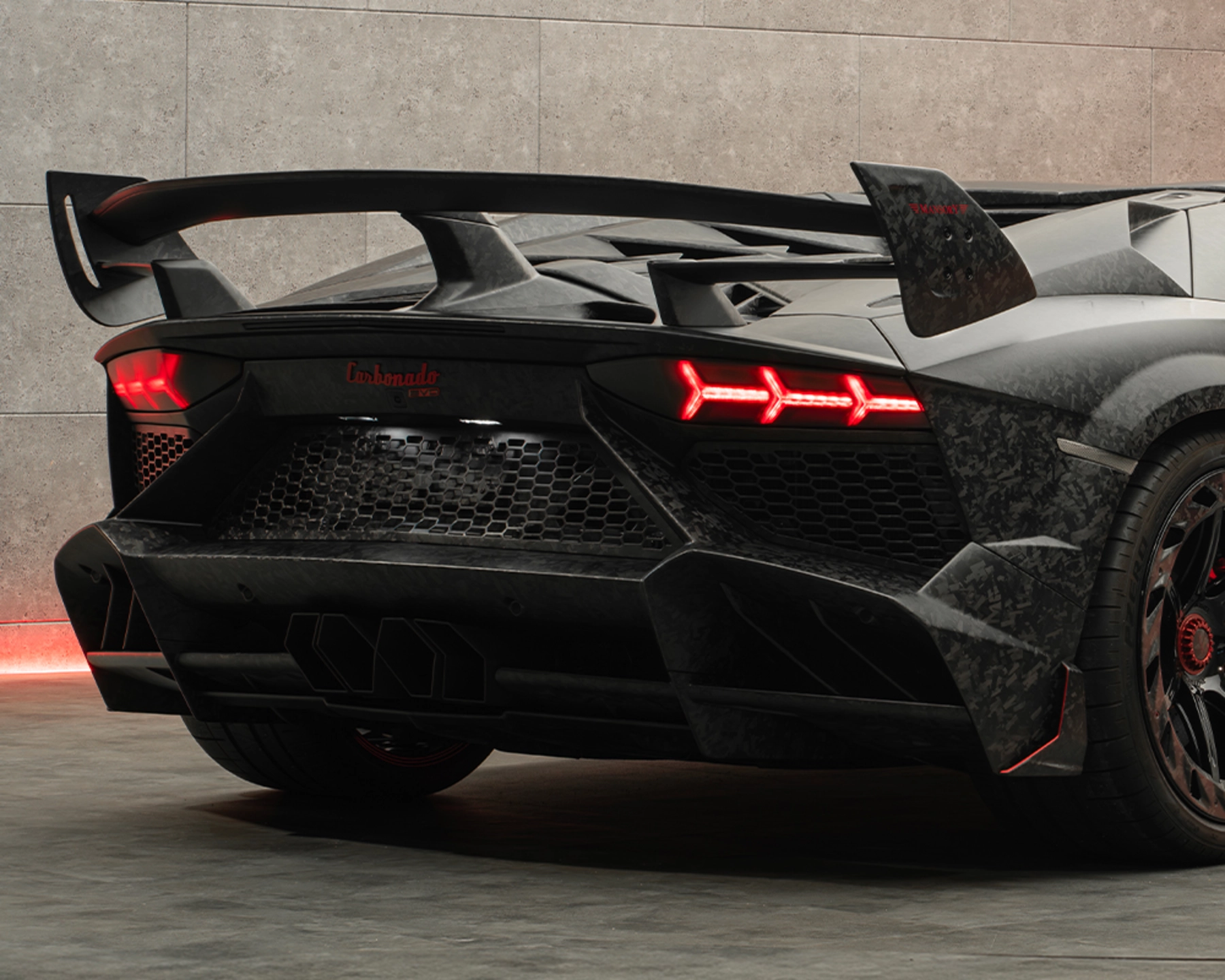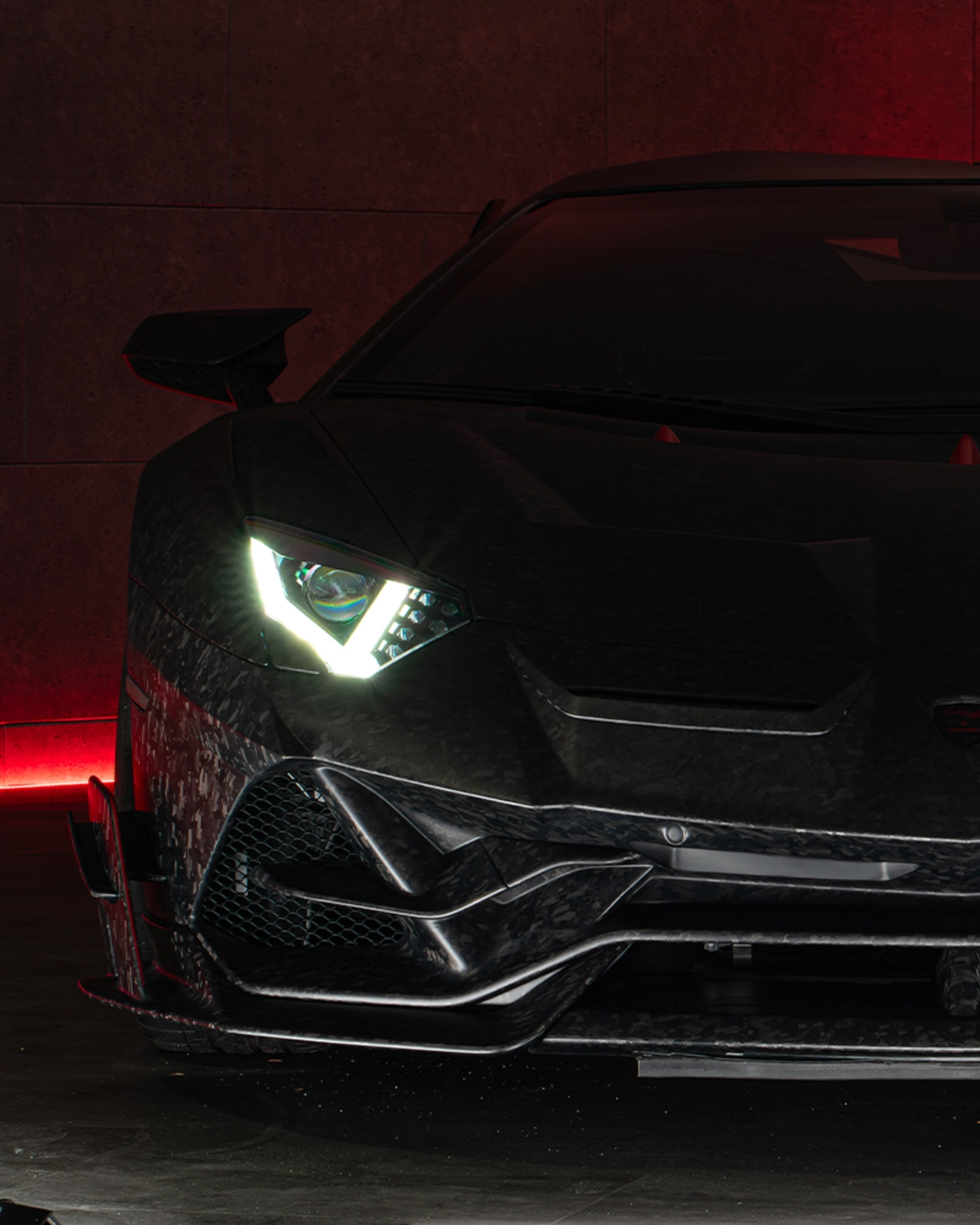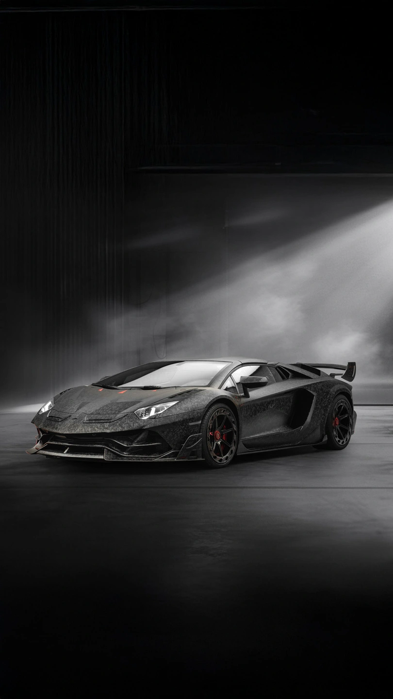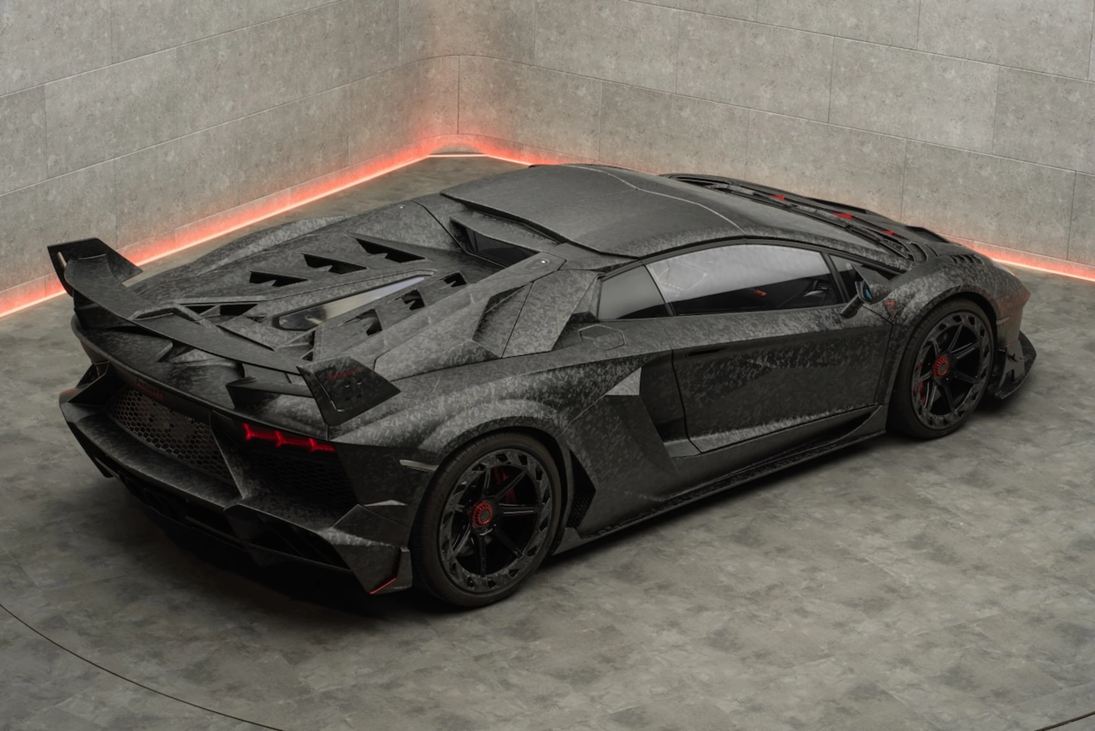 MANSORY Carbonado EVO, with a black exposed forged carbon fiber look based on the Lamborghini Aventador SVJ Roadster.
