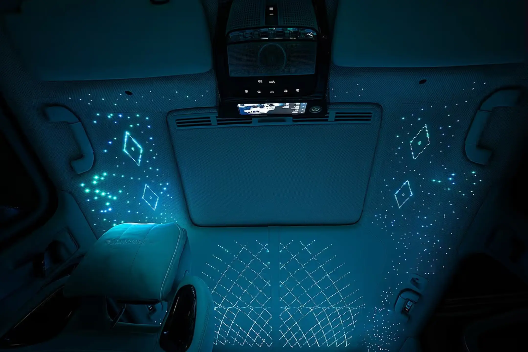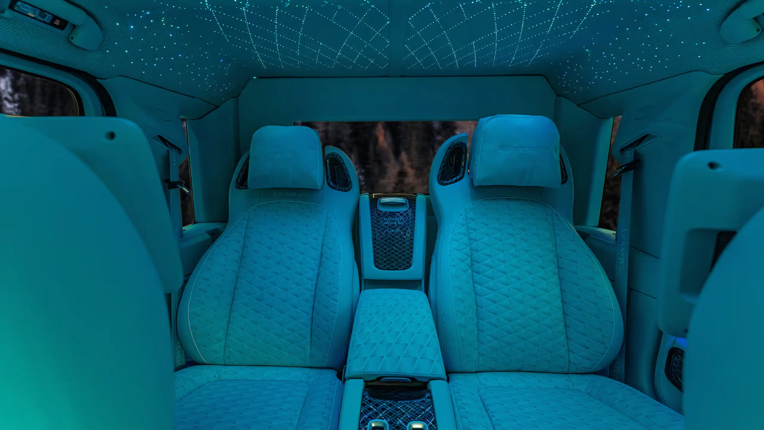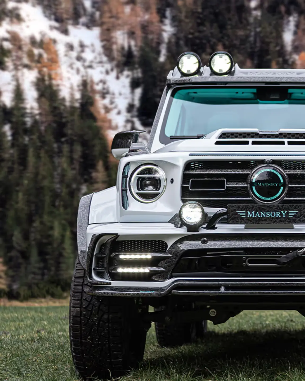 As with all MANSORY complete conversions, the interior can generally be freely chosen in terms of leather, colors, quilting and carbon design. The refinement of the interior corresponds in type and extent to a classic complete conversion from MANSORY. A special highlight is the roof lining, which is equipped with more than 3,000 LEDs and is installed at the customer's request and can be individually selected by each customer in terms of design and execution. All changes to the interior of the “MANSORY Gronos 6x6” offer a unique ambience for the highest demands, even in a vehicle designed for extreme off-road mobility.