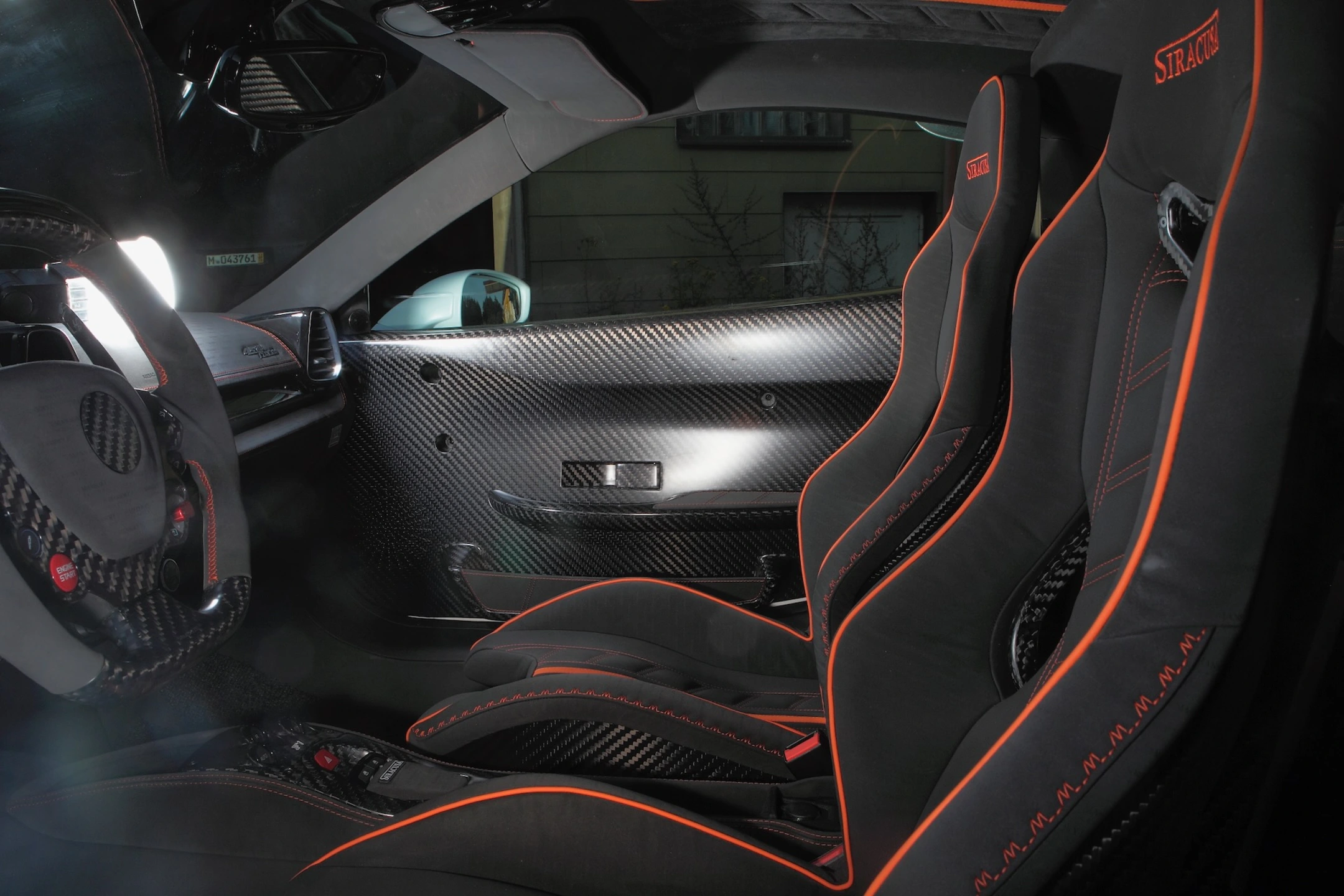 The interior is equipped with the most precious materials such as the finest leather, Alcantara and exposed carbon. Sports seats, newly designed centre console and sports steering wheel with a switch panel provide the perfect fast-driving experience together with the aluminium pedals.
