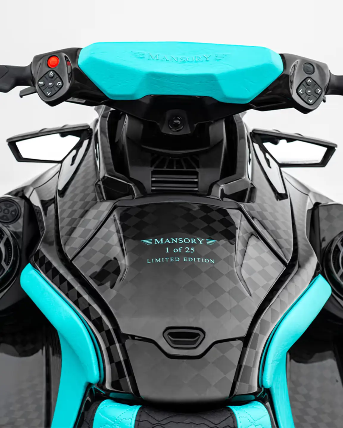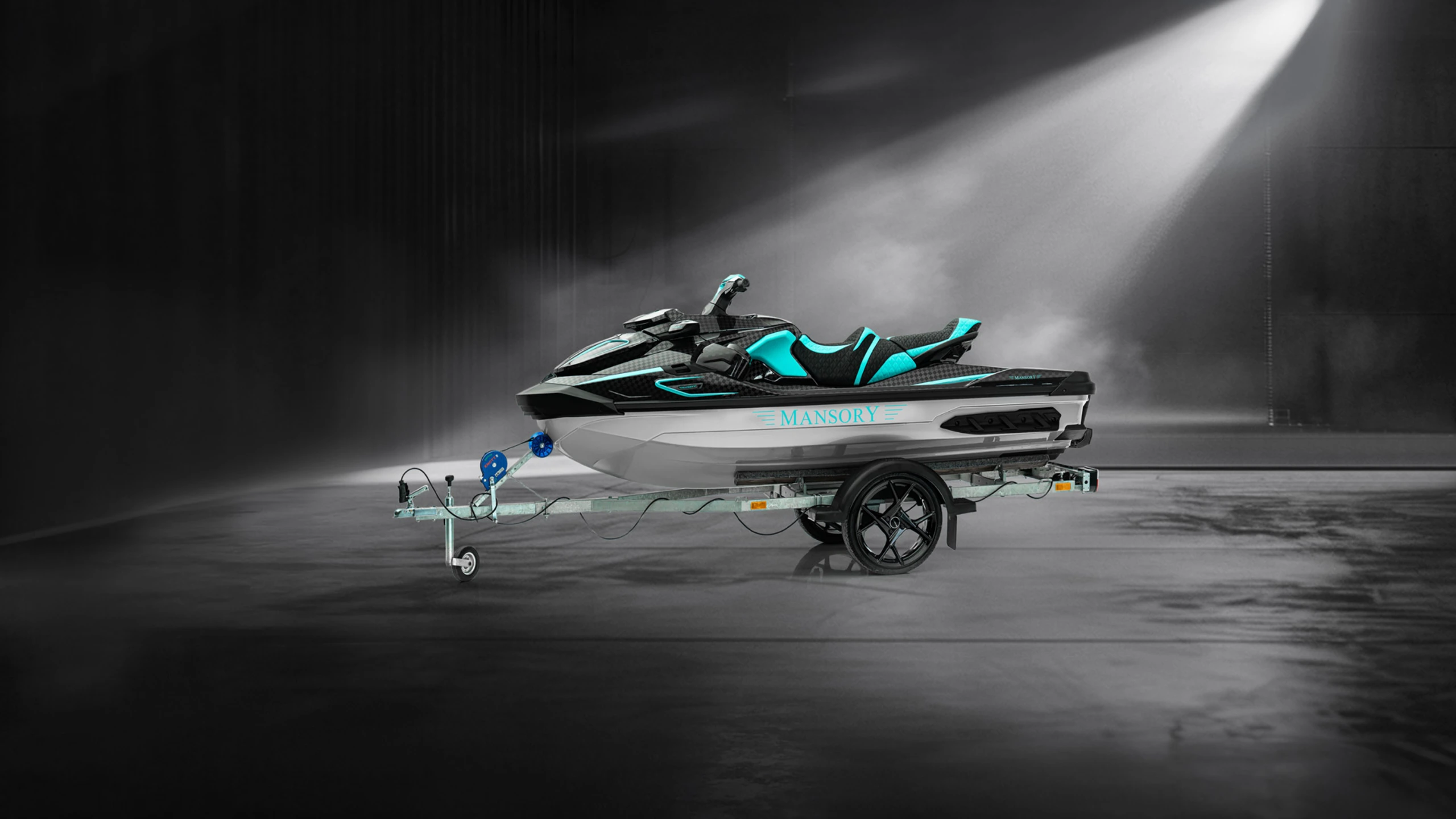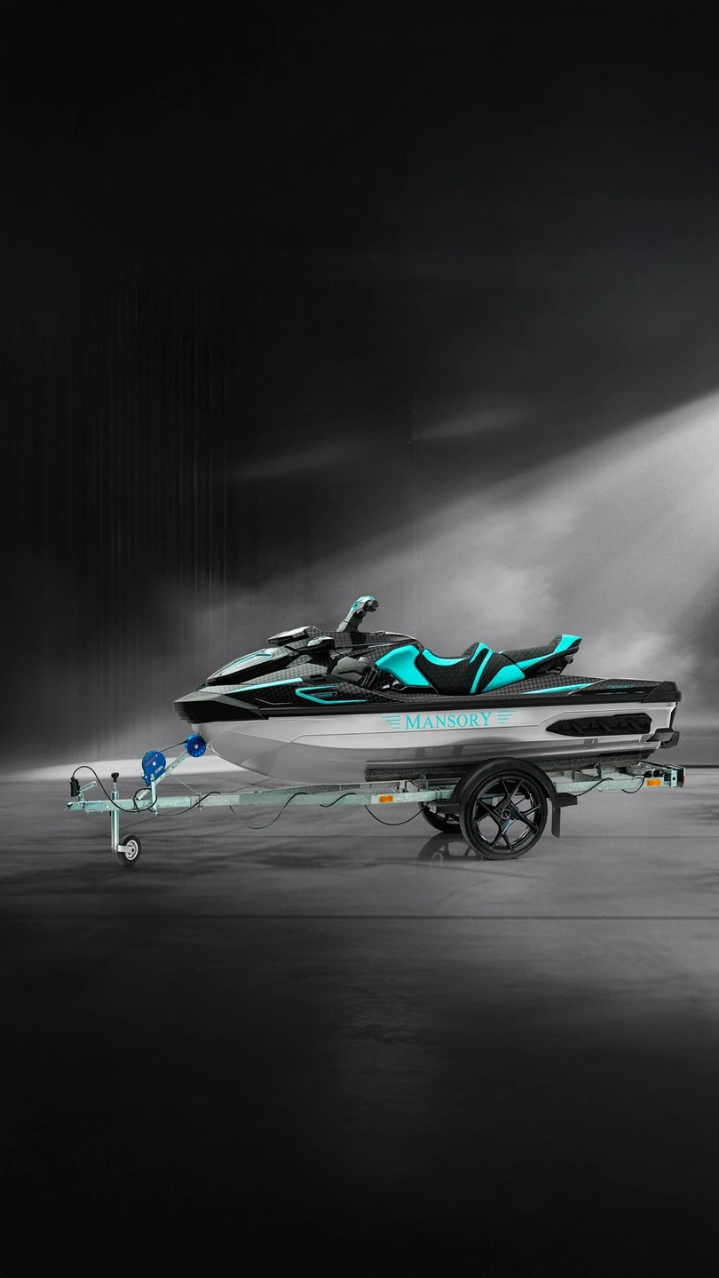 Limited to 25 units and based on the Seadoo GTX 300, the complete body of the jet ski is made of Stealth Carbon - a very stiff and ultra-light material, which incidentally also saves about 10 kilograms of weight. [Read more]Thanks to this material and in combination with a new LED lighting at the front, the MANSORY designers have given the jet ski an extraordinary look that changes the overall appearance of the jet ski in an elegant and impressive way. Thus, after its conversion, the "Marlin Jet 400" appears significantly more dynamic, at the same time more aggressive and thus also becomes a luxurious eye-catcher on the water. The customer can choose the colour design completely freely and thus adapt its "Marlin Jet 400" - if desired - also completely to the design of its MANSORY vehicle towing the jet ski.