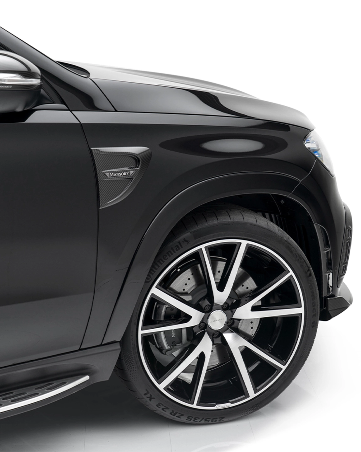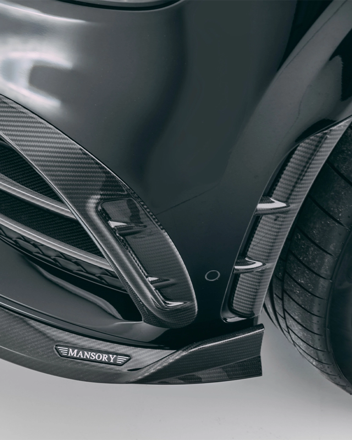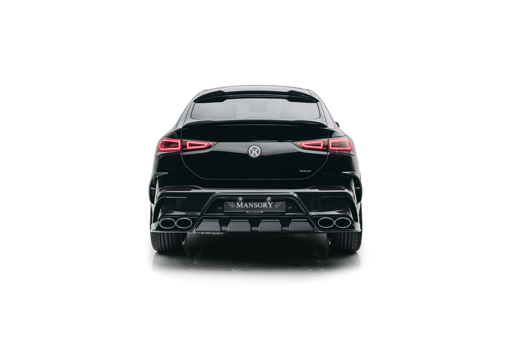 In order to further accentuate the already very elegant appearance of the various SUV models from Mercedes in detail, various carbon add-on parts can be installed for all variants. The noble and lightweight material is used on the front air intakes, the front apron, the exterior mirrors and the rear apron.[Read more] In the area of the rear apron, the customer has the choice of ordering the rear diffuser with or without a central third brake light. Further carbon applications such as the roof spoiler and air outlets harmoniously round off the exterior appearance, which deliberately keeps the design language of the Mercedes SUV models discreet. The standard Mercedes logos are replaced by MANSORY logos either.