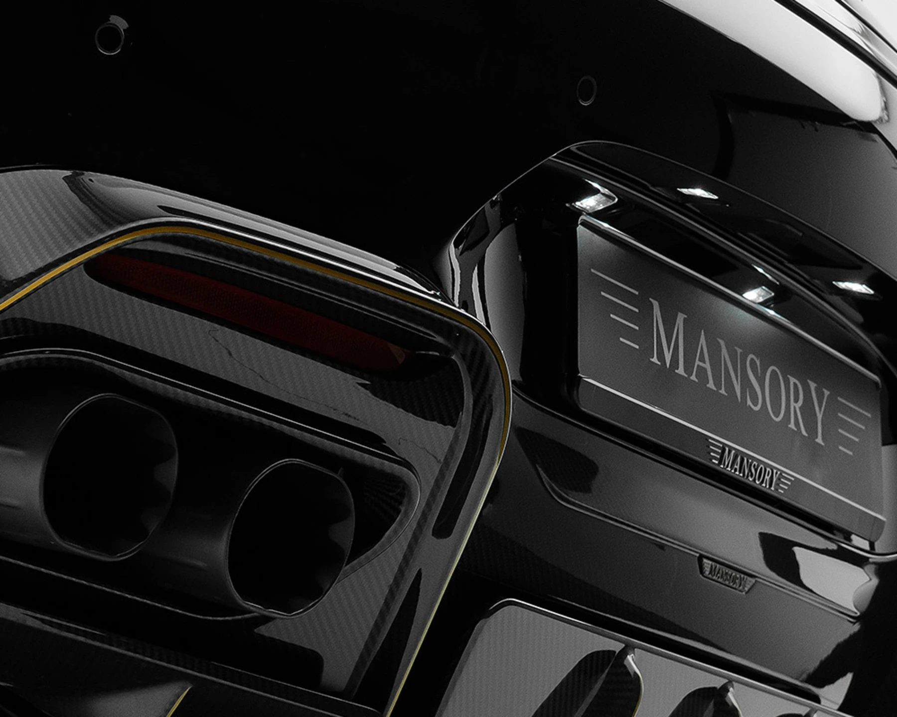 As is usual with every MANSORY individualization program, the interior is also given a very special meaning and a great deal of attention. Depending on the customer's wishes, the entire interior is completely redesigned and every conceivable component is wrapped in the finest leather. In addition, all seams can be adapted to individual colour tones, such as the exterior paintwork. Various carbon inlays, a leather-carbon sports steering wheel, floor mats and aluminium pedals - all with subtle MANSORY lettering - round off the refinement of the interior and set further visual accents.