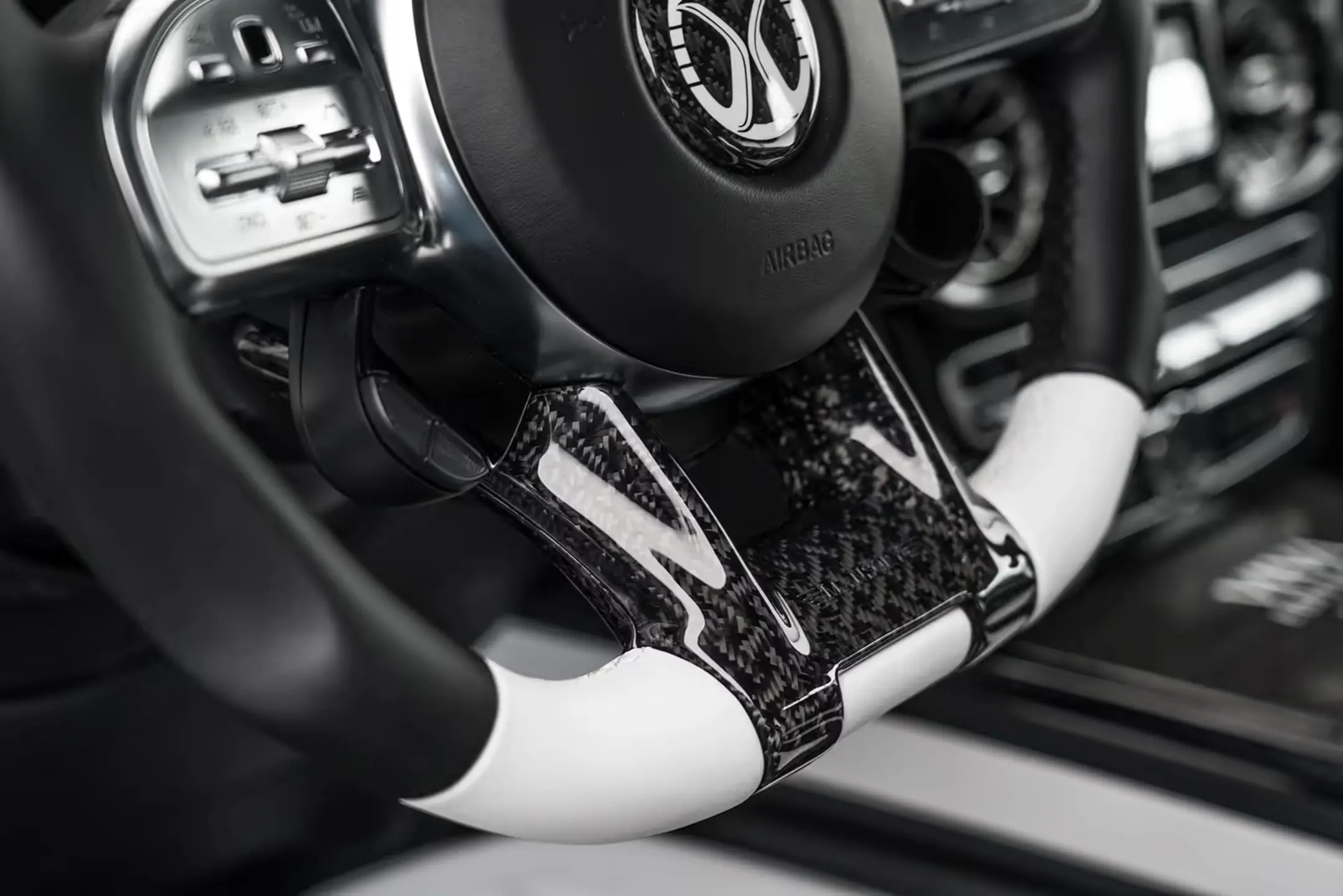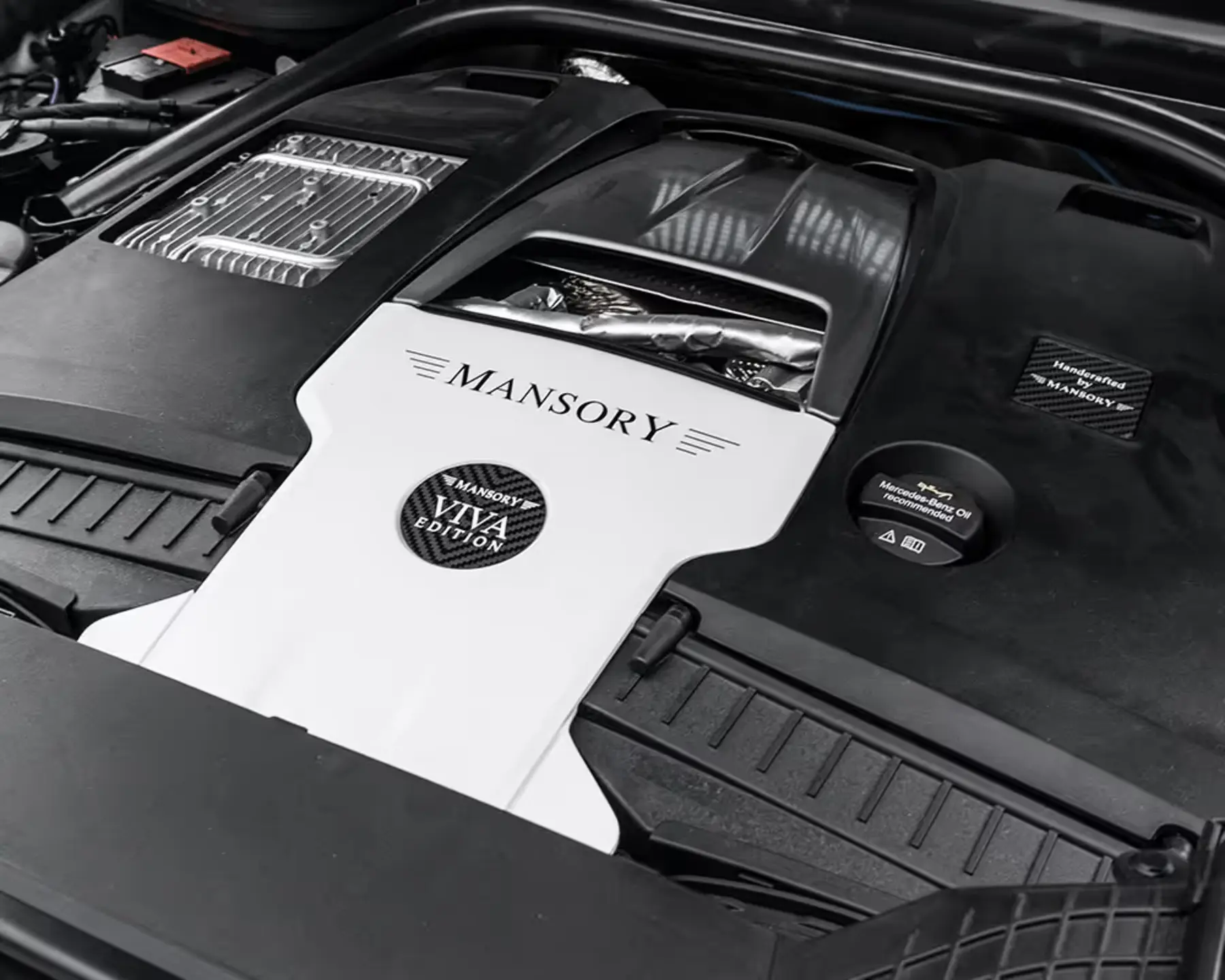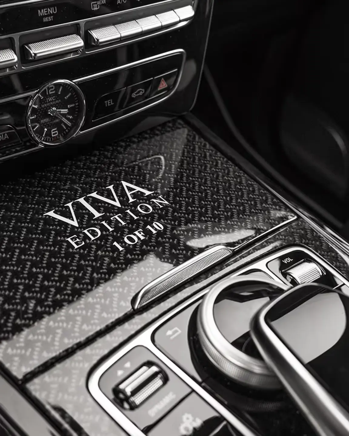 The body styling of the G-Class is impressive both visually and technically. All aerodynamic parts have been redesigned. Starting with the front apron, the elegantly widened front wings, the widened doors and finishing with the rear apron. All these components are made of full carbon. The Design of all Carbon applications are made according to customer requirements. Just like the paint and the full-leather interior. The ultra-light full carbon bonnet in unpainted and therefore visible carbon with additional cooling air intakes at the front and sides completes the redesign of the front section. The double daytime running lights on both sides of the front apron and two light-intensive additional headlights on the edge of the roof are also trimmed in carbon and complete the overall impression of the "VIVA Edition" elegantly and harmoniously from the front. At the rear, the spare wheel is completely covered in carbon either and is - in combination with the newly designed rear apron - providing a harmonious finish. Numerous other components in Carbon, such as the indicator bases, door handle inserts, mirror housings and air outlets, add further striking highlights and, together with the special paint finish, create an extremely stylish combination.