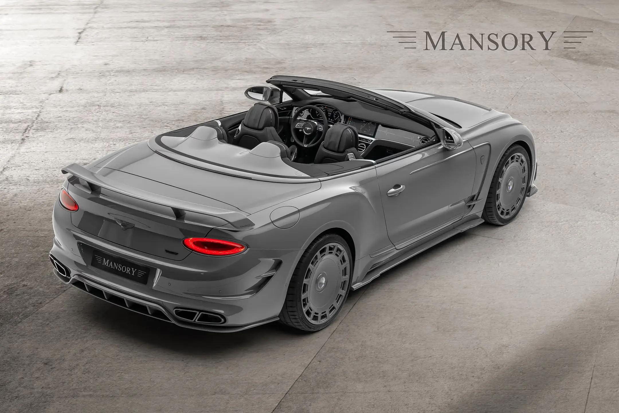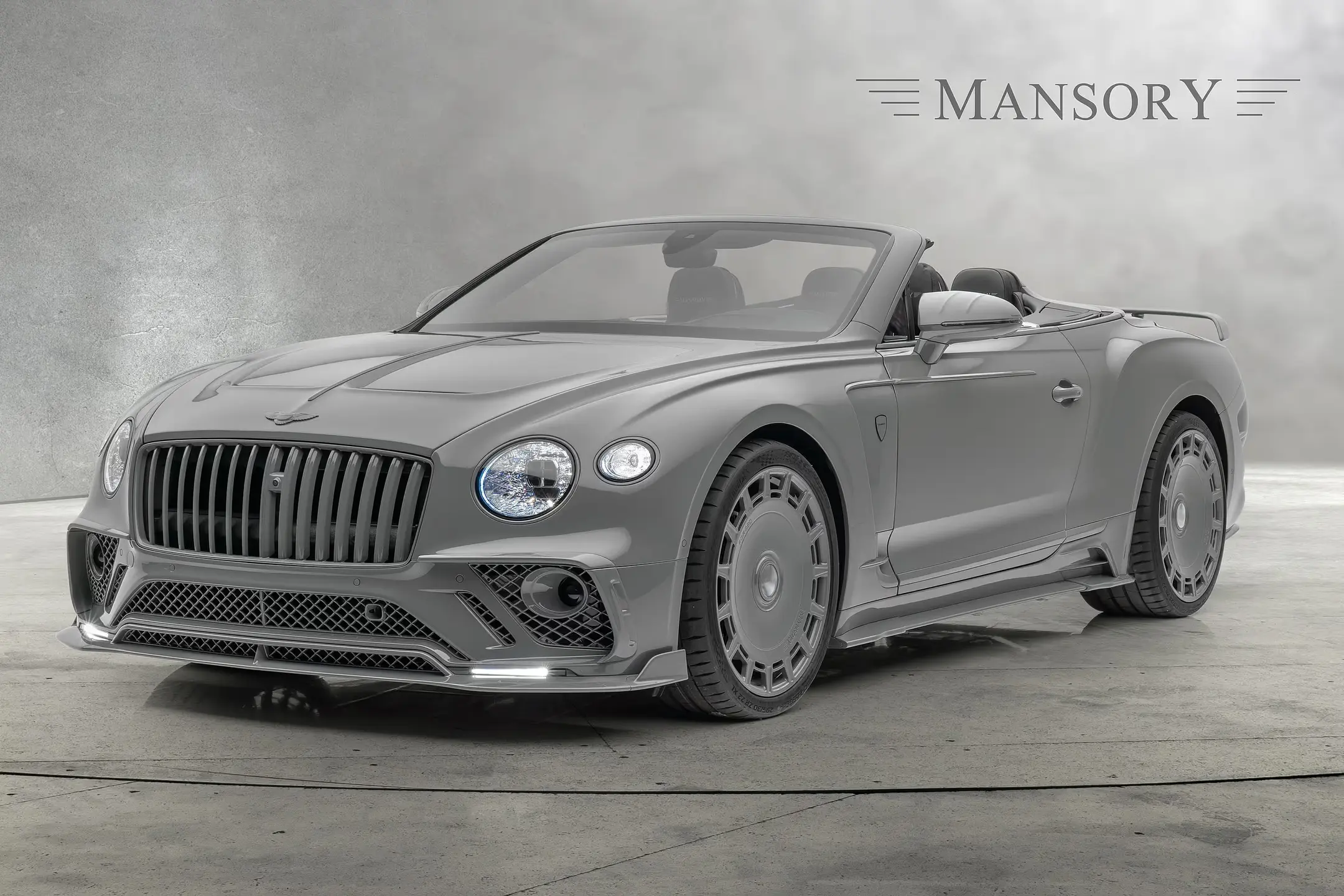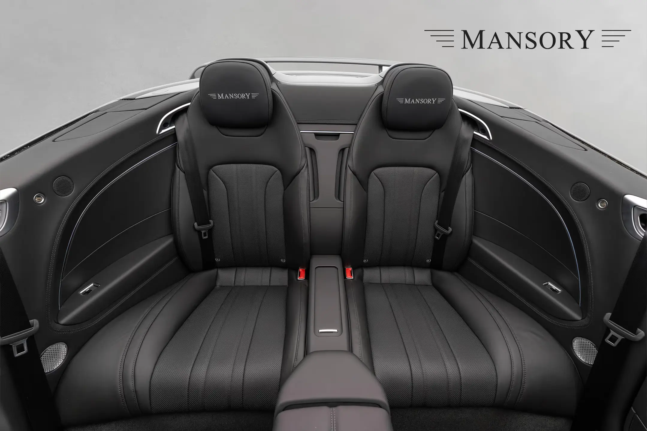 Main Paint Cambrian Grey, extended range solid and metallic Interior colours beluga. MANSORY customization: front bumper with front lip in car colour, rear bumper with diffusor, sideskirts, engine bonnet, mirror housing, cover for front fender, rear decklid spoiler wing in carbon fiber, fully forged FD.15 disc wheels 10x22” – 12x22”. Components are special painted in Cambrian Grey.