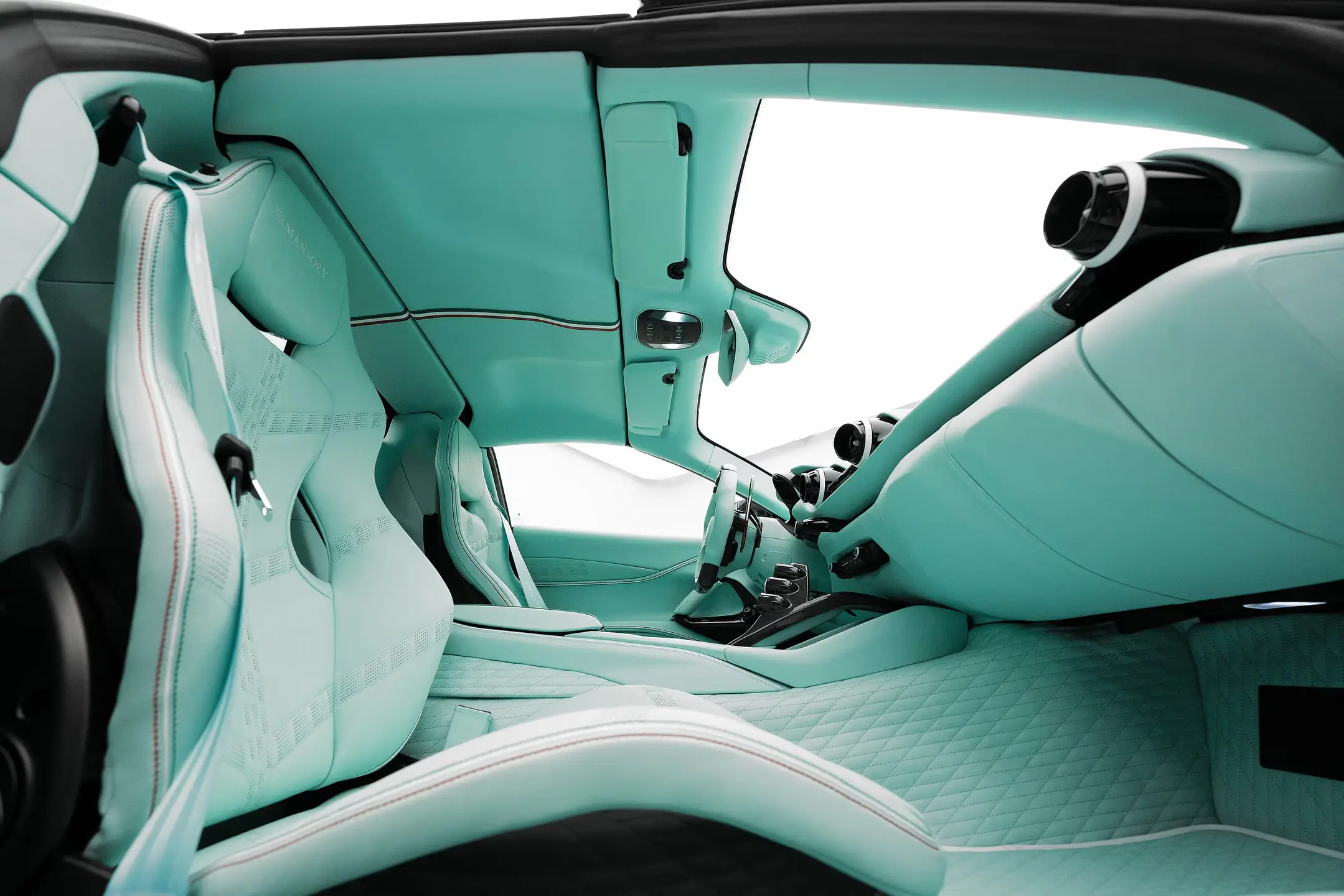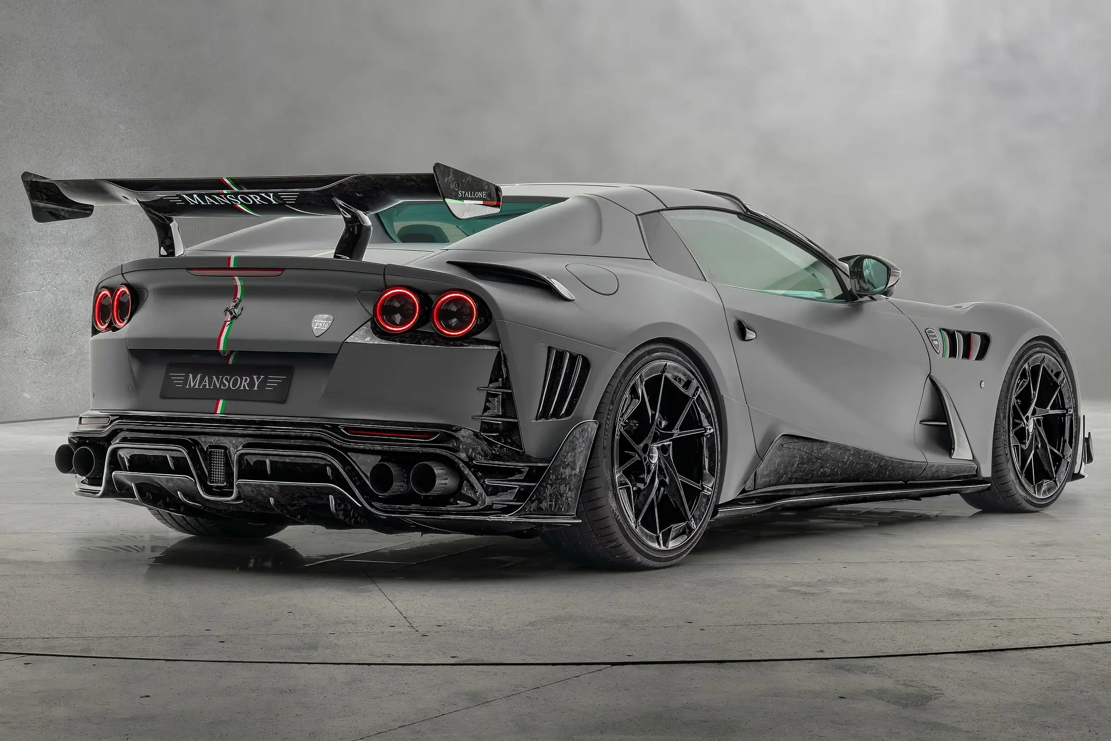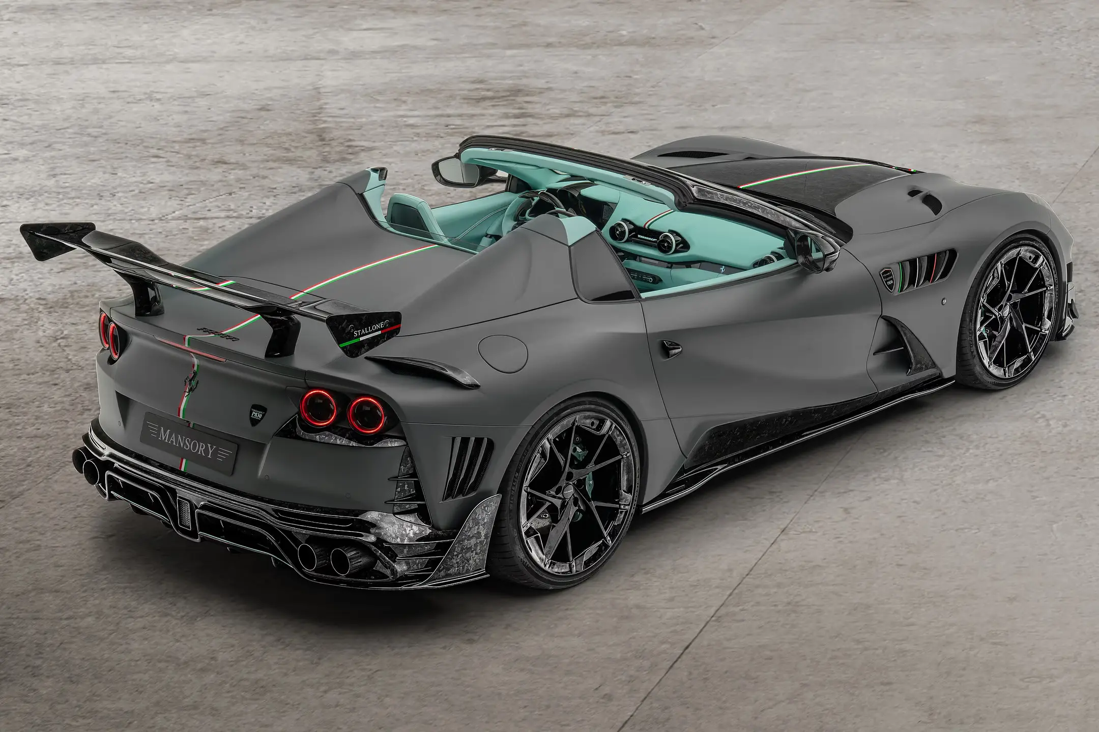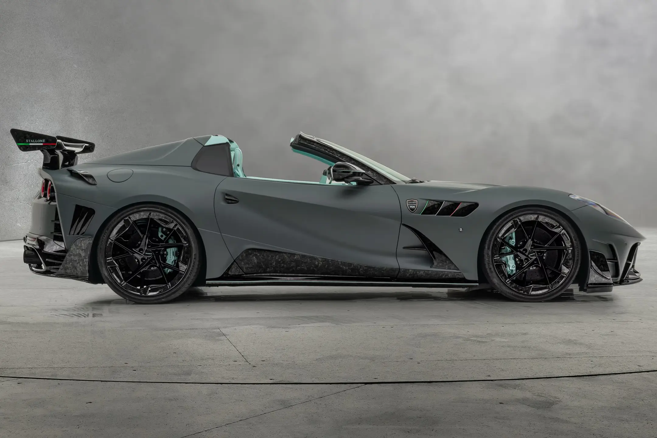 MANSORY Stallone based on Ferrari 812 GTS shows further detailed examples of individualisation possibilities within the scope of "MANSORY Bespoke" with a sophisticated grey matt paint and fully leather interior. The performance reaches out masive 830 HP and 740Nm with a top speed of 345 km/h and accelerates from a standstill to 100km/h in 2,8 seconds.