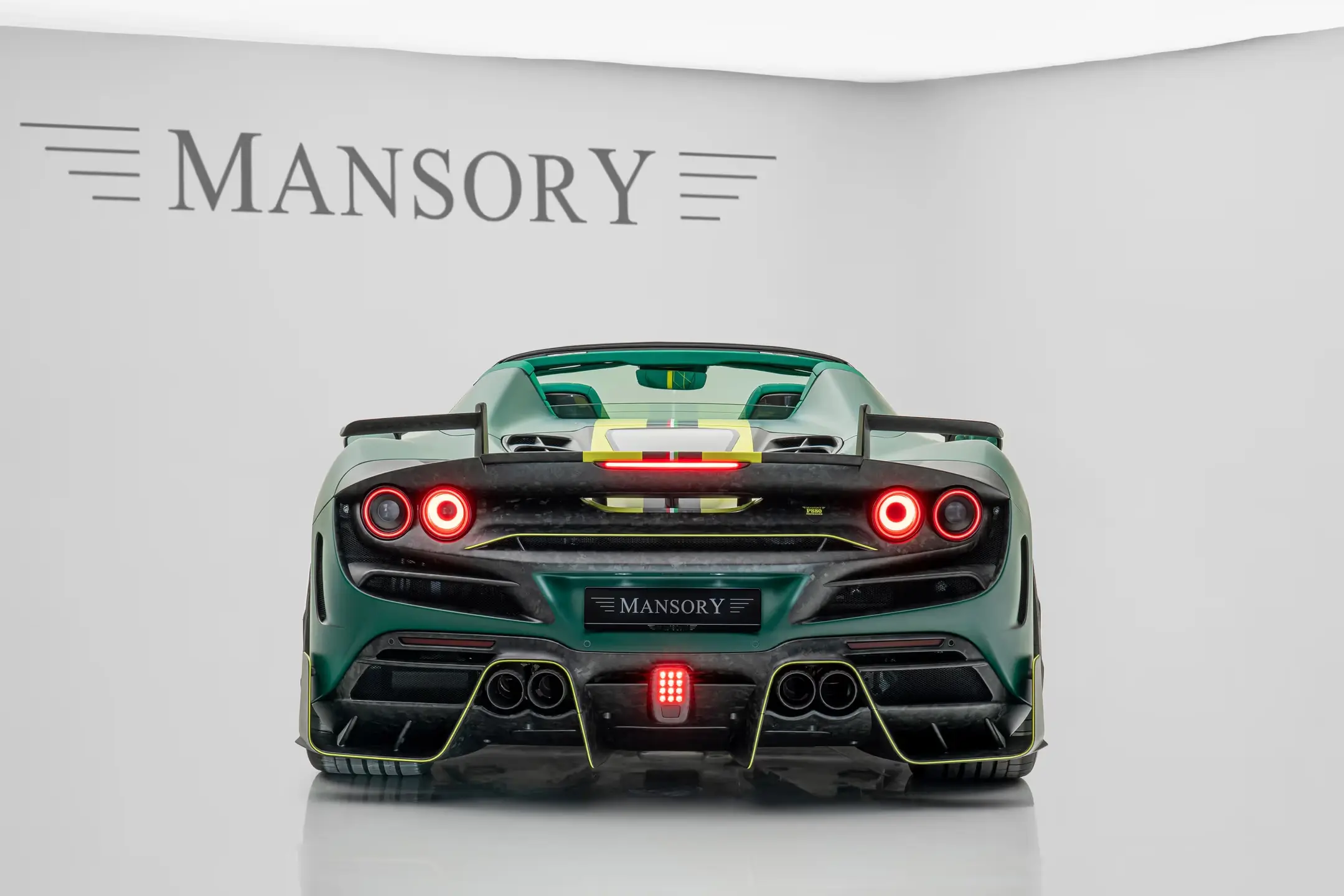 Following a tradition of more than 30 years, the luxury manufacturer MANSORY produces its Ferrari aerodynamic components unchanged and exclusively from the ultra-light material carbon. In the case of the "MANSORY F8XX" in the particularly attractive version called "Forged Carbon". In addition to the front apron, the side skirts and the rear apron, one component of the body conversion deserves special attention: the rear wing of the "MANSORY F8XX", which is divided into two L-shaped angles. A rarely perfect example of how extravagant looks and high technical standards can be combined in harmony. In addition to the appearance of the "MANSORY F8XX", the technology of the F8 Tributo has also been extensively revised and refined in detail. While the mid-engine V8 produces an impressive 720 hp and 770 Nm on the crankshaft from its 3.9-litre displacement as standard, the engineers in MANSORY's in-house engine department were able to increase these figures to an impressive 880 hp and 960 Nm thanks to extensive modifications to the engine management and exhaust system. And this without changing the driveability and excellent response of the standard engine. The corresponding figures for driving performance increase to 354 km/h and the sprint from zero to 100 km/h is reduced to 2.6s. The high engine power is transferred into maximum performance in combination with adapted suspension components and the "YT.5" rims. These one-piece, ultra-light forged rims in the dimensions 9.5 x 21 and 12 x 22 are used as a wheel-tyre combination with high-performance tyres in the sizes 255/30 ZR21 (VA) and 335/25 ZR22 (HA).