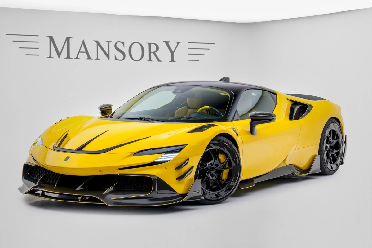 MANSORY presents an entirely new developed super softkit for the Ferrari SF90 (Coupé / Spider). Lightweight carbon fiber body components, a significant increase in performance, suspension and forged sports rims up to various interior. Power increase up to 1,100 HP and 980 Nm with a performance of Vmax 355 km/h and 0-100 km/h in 2.4s. CO2 emissions (combined): 228 g/km, fuel consumption (combined): 8.2 l/100km, power consumption: 9.3 kW/100km