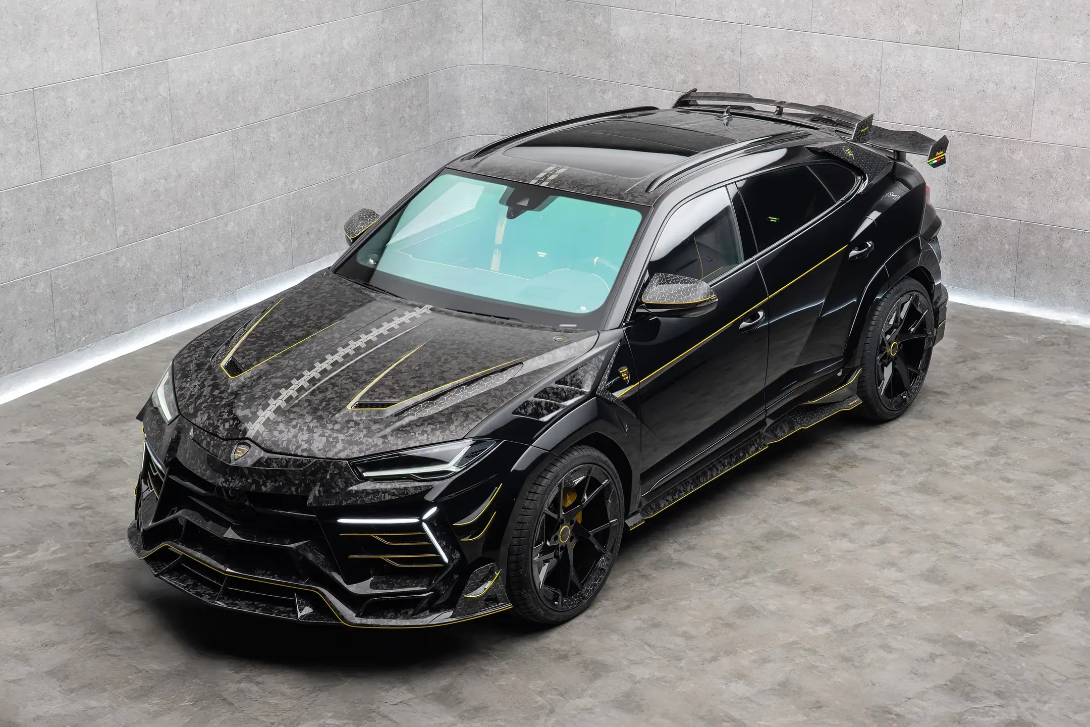 BODY – CONVERSION The front end of the "MANSORY Venatus S" continues to impress with its carbon fibre front end and the ultra-light bonnet in visible carbon fibre with additional cooling air outlets rounds off the front view in conjunction with the front apron, which has also been redesigned. The redesigned star-shaped daytime running lights are particularly eye-catching. MANSORY side skirts continue the design language on the sides and make the “MANSORY Venatus S” appear significantly stronger, but also lower and more elongated. To reduce lift at the rear axle, the MANSORY engineers developed an attractive double spoiler at the rear. Both components of the spoiler are made entirely of carbon fibre and are located both on the tailgate and in the roof area. The roof spoiler itself is available in two versions (small and large). A new rear apron with diffuser also skilfully sets off the three newly shaped tailpipes of the sports exhaust system. Numerous carbon components such as trim strips, mirror housings and air intake trims add further striking, visually appealing accents. PERFORMANCE The already extremely powerful heart of the vehicle - a V8 twin-turbo engine - has been given numerous and far-reaching modifications by the MANSORY engineers. Among other things, the “MANSORY Venatus S” has been given a new engine management system and a large-volume sports exhaust system with a new layout for the three exhaust tailpipes and a high-performance catalytic converter. These modifications enable the "MANSORY Venatus S" to generate the extremely impressive performance data of 900 hp (standard: 666 hp) and an increased torque of 1,100 Nm (standard: 850 Nm). The corresponding performance data is as follows: Vmax 325 km/h and 0-100km/h in 2.9s.