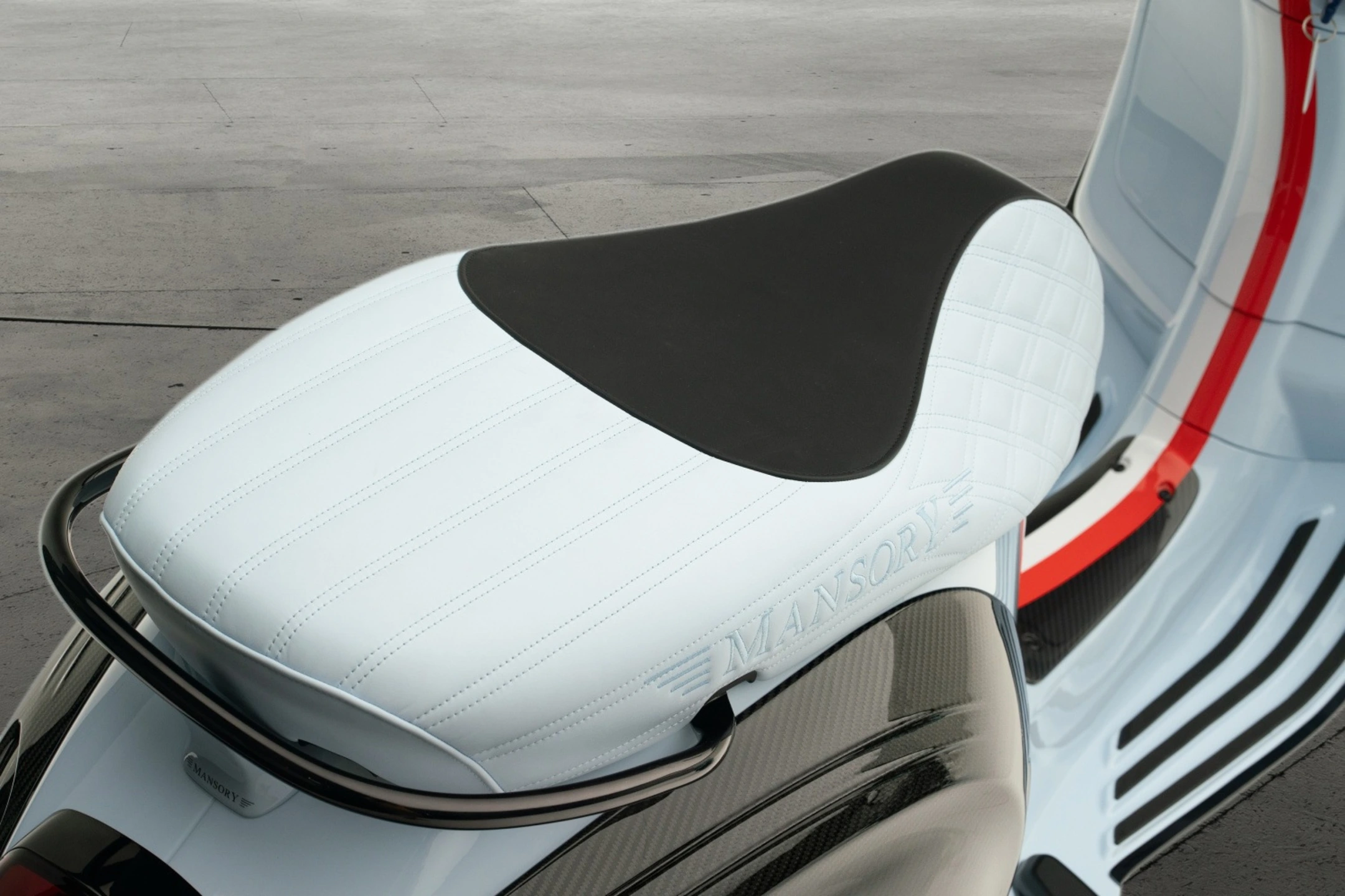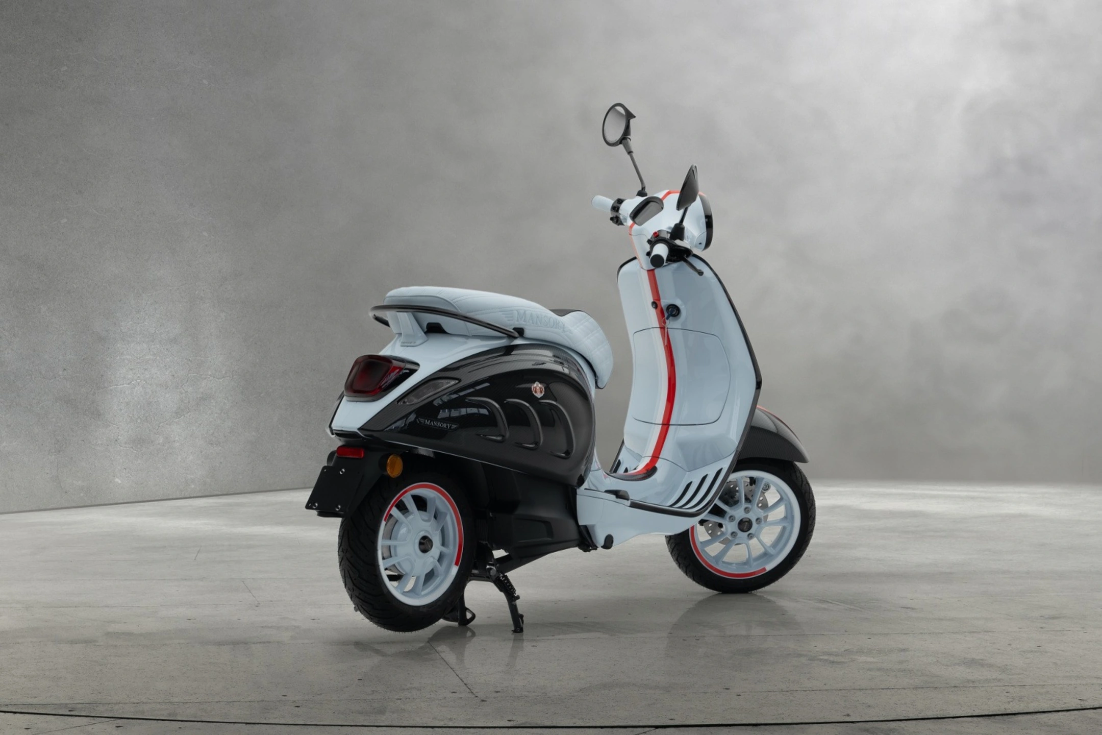 The fully electric scooter “Monaco Edition”, limited to 99 examples, impresses like all other creations from MANSORY with its special colour design in the national colors of Monaco, a mudguard and side panels made of full carbon and a genuine leather seat with cross stitching. Various other parts made of full carbon make the “Monaco Edition” a special vehicle that is unparalleled in its entirety and rightly bears the name MANSORY. Technically, the “Monaco Edition” is unchanged from its series counterpart and offers pure driving fun in both its “Eco” energy-saving mode and its “Power” mode and impresses with powerful torque that can be accessed at any time. It is almost silent and, thanks to its lithium-ion battery and energy recovery system, operates autonomously in everyday traffic. The “Monaco Edition” is a clean, quiet and very stylish way to contribute to the environment and thus improve quality of life.