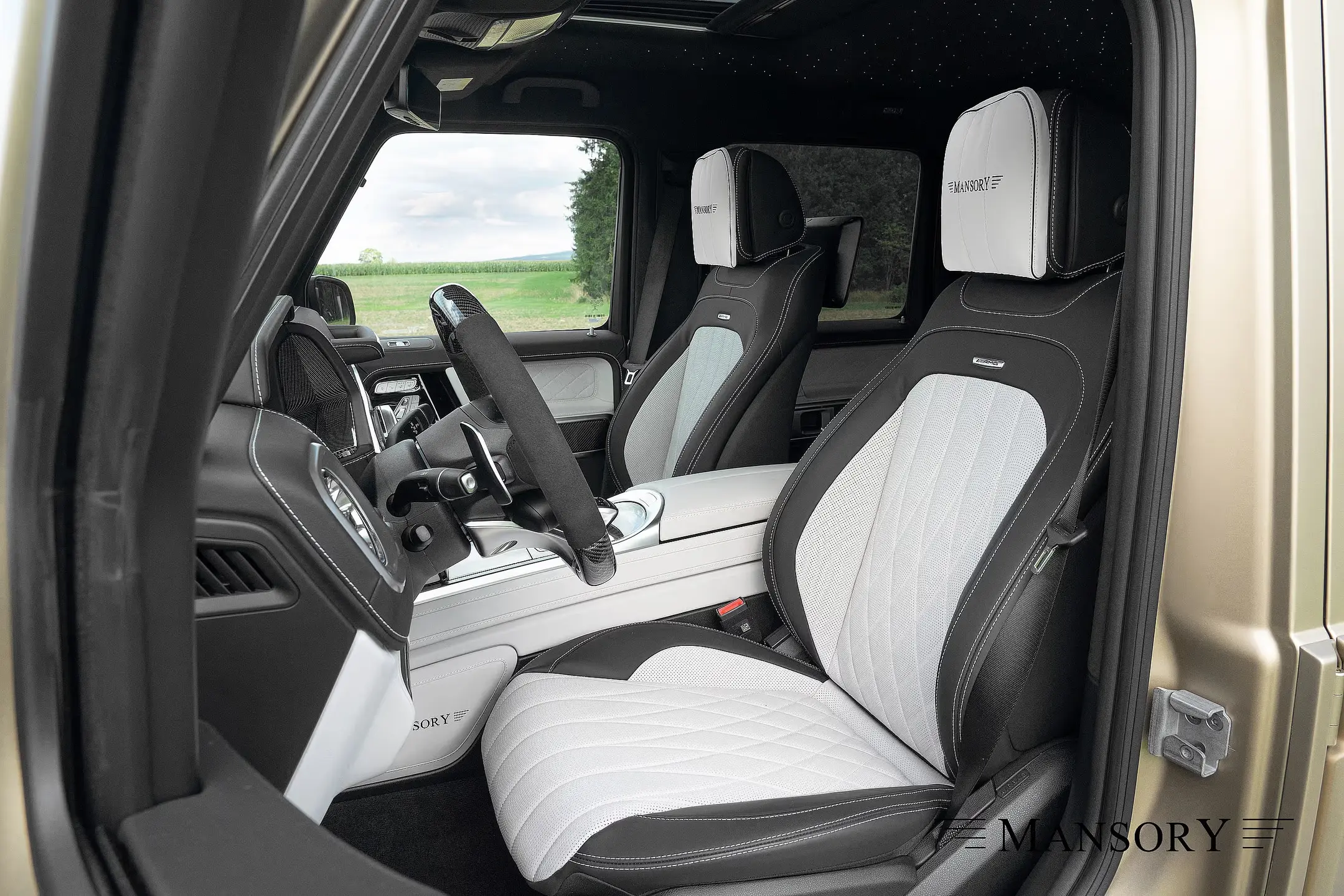 Immerse yourself in an unparalleled automotive experience with the Mercedes-AMG G63 - Mansory P720. This luxury powerhouse, painstakingly redesigned by MANSORY, showcases a complete vehicle conversion that breathes new life into the iconic G63. The P720 is a bold statement of exclusivity, passion, and technical prowess, designed for those who seek more than just a car. From the aggressive yet refined exterior to the immaculately crafted interior, every detail of the P720 has been meticulously curated. It boasts YN.5 wheels, giving the vehicle an unmistakbly dynamic appearance and superior road presence.