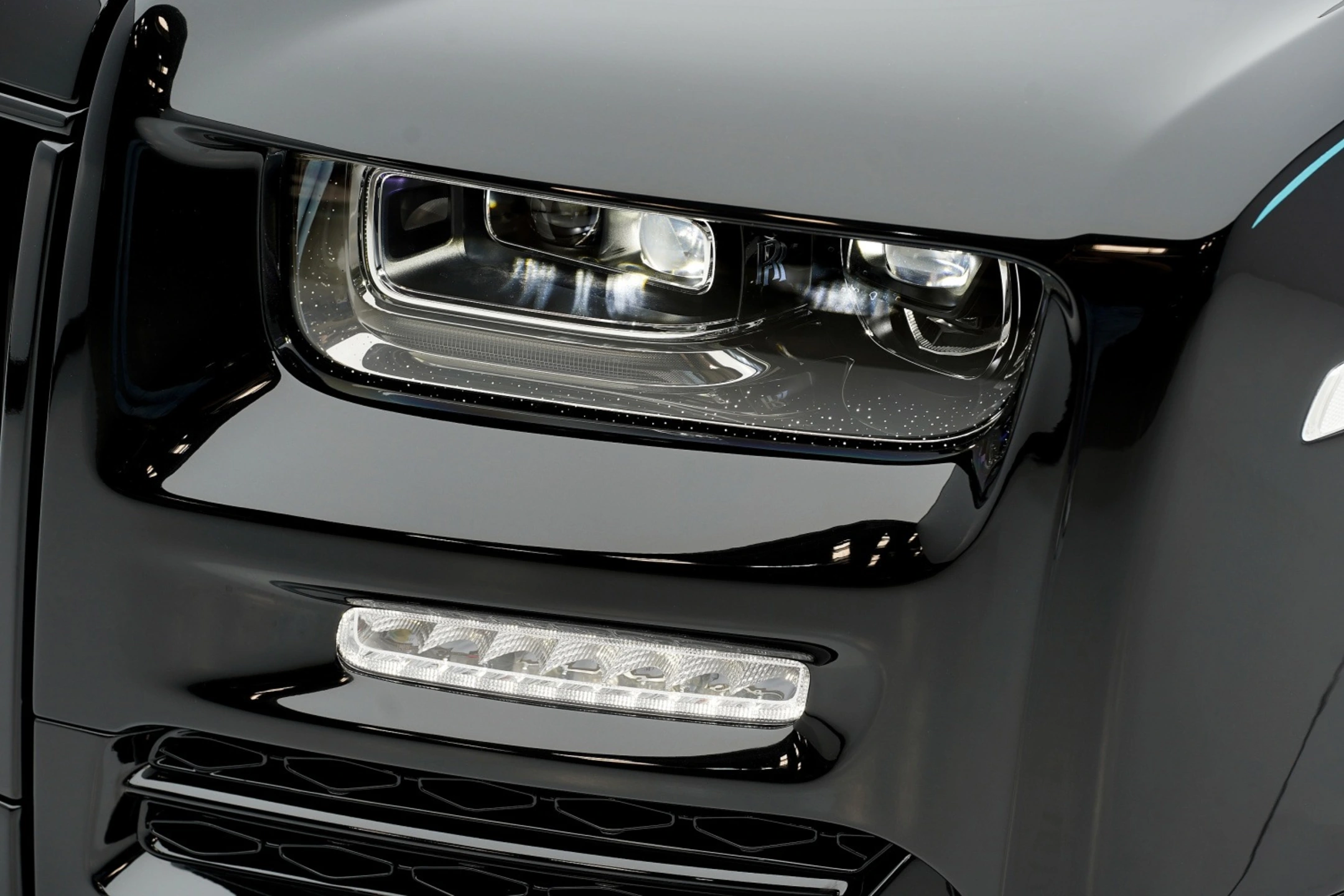 Front bumper with sport front lip & front fender slim long DRL, rear bumper with diffuser visible carbon fiber, engine bonnet exposed, side skirt lips in visible carbon fiber, roof spoiler in visible carbon fiber, ambiente grille illuminated, ambiente grille at front bumper, rear decklid spoiler, engine cover carbon fiber, sport exhaust system, exhaust remote control, lowering suspension. Individual interior, sport steering wheel, entrance panels, sport pedals, door welcome lights. Trunk and floor mats. FD.15 24” fully forged wheels black painted. Rolls Royce extra equipment: Exterior Style Main Exterior Colour Colour: R32-Black Diamond), Chrome Plated Visible Exhausts, Front Ventilated Seats Rear Ventilated Seats, Technical Fibre, RR Monogram to all Headrests (Colour: FW-Arctic White), Contrast Seat Piping (Colour: FW-Arctic White), Bespoke Interior - Module Editing Immersive Seating with Centre Console, Rear Compartment Curtains (Colour: R1-Black), Rolls-Royce Bespoke Audio