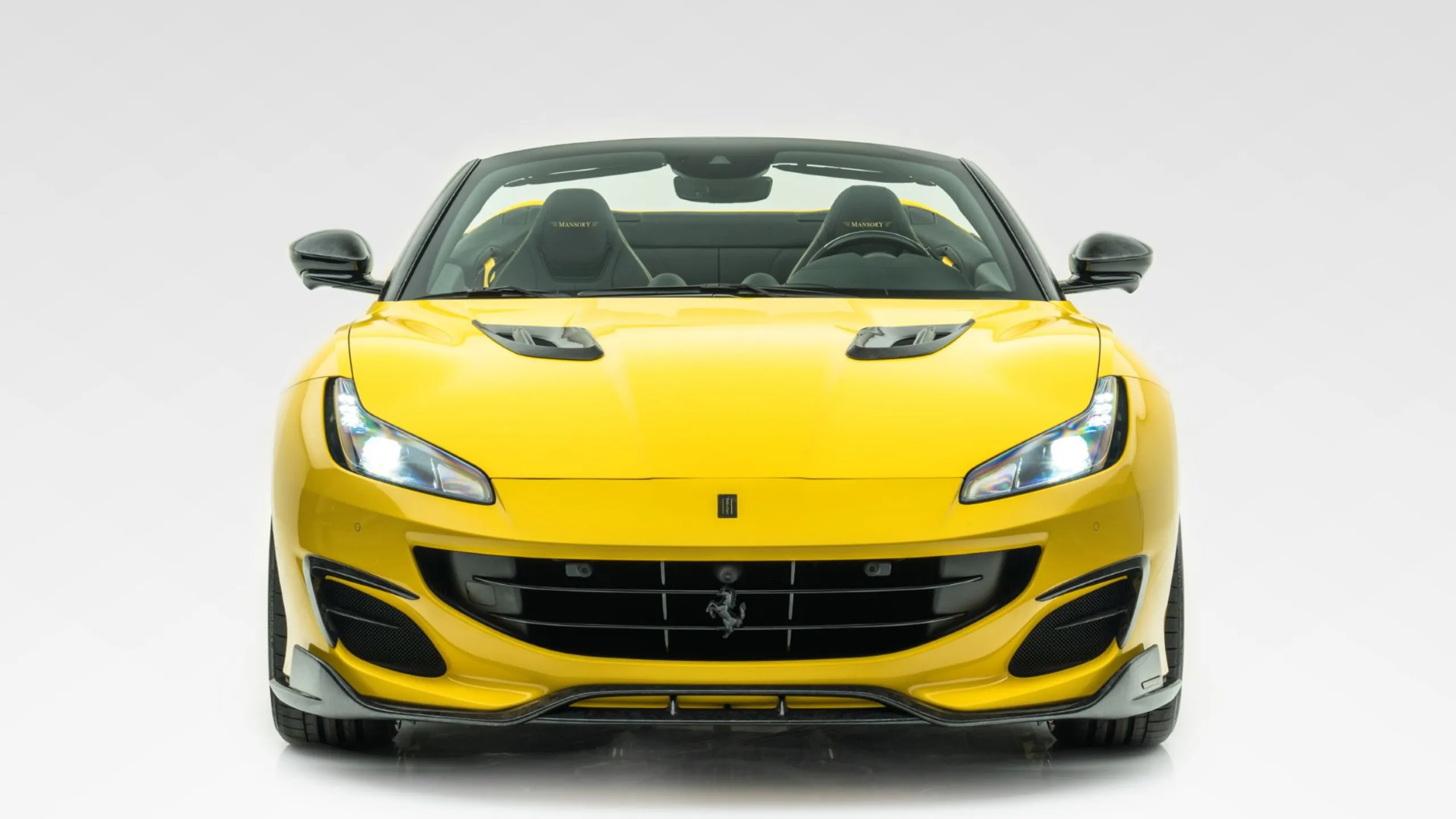 The entire interior is completely done with the finest smooth leather in black. Corresponding to the exterior paintwork - at the same time elegantly and tastefully accentuating the black leather - all the seams and almost all the interior control buttons are finished in yellow. Only the three buttons on the control unit of the dual-clutch gearbox are given their own colours: Green, white and red - the colours of the Italian Republic and the national flag of Italy. Once again, the interior specialists at MANSORY have succeeded in perfectly combining a sporty atmosphere with high functionality, comfort and design. A MANSORY sports leather steering wheel, MANSORY floor mats edged in yellow and several, precisely embroidered MANSORY logos elegantly round off the fully comprehensive refinement in the interior.