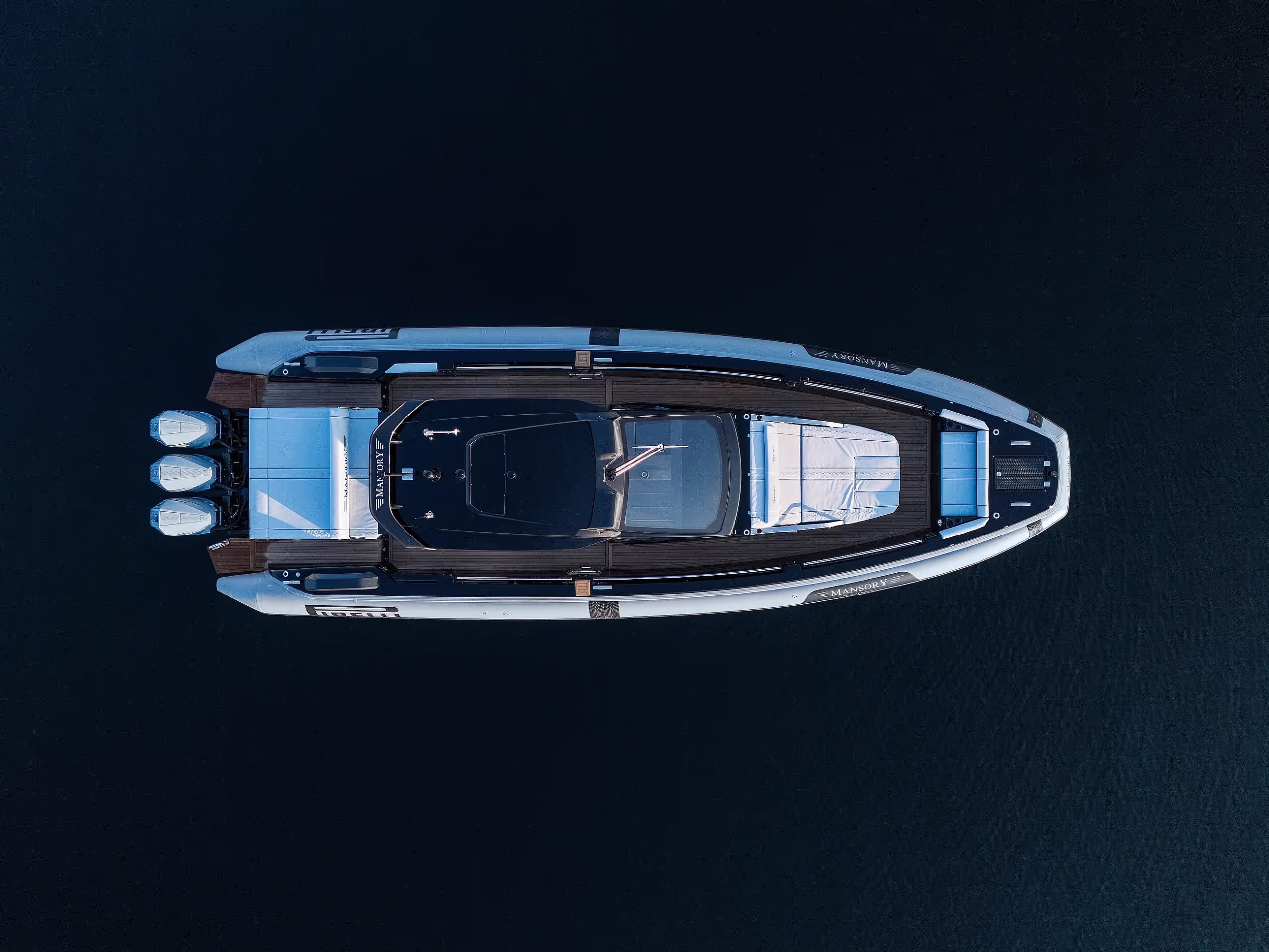 Mansory logos: The sides of the boat are embellished with Mansory logos.